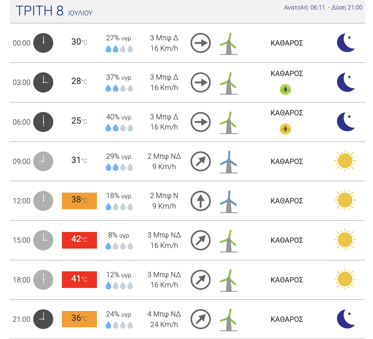 Για την πόλη της Λάρισας η πρόγνωση – σύμφωνα με το meteo.gr – καταδεικνύει πως η πλέον θερμή ημέρα θα είναι η Τρίτη με τα θερμόμετρα να δείχνουν έως και 42 βαθμούς Κελσίου τις μεσημβρινές ώρες.