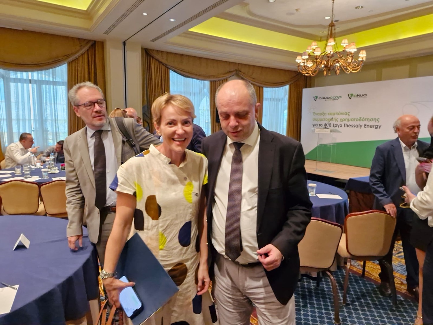 Εκδήλωση πραγματοποιήθηκε στο Ξενοδοχείο “Μεγάλη Βρατανία” στην Αθήνα από την εταιρία Akuo Greece για την έναρξη της καμπάνιας συμμετοχικής χρηματοδότησης (Crowdfunding), για το έργο ανανεώσιμων πηγών ενέργειας στη Θεσσαλία, με κεντρική ομιλήτρια την Υφυπουργό Ενέργειας, κα. Αλεξάνδρα Σδούκου.