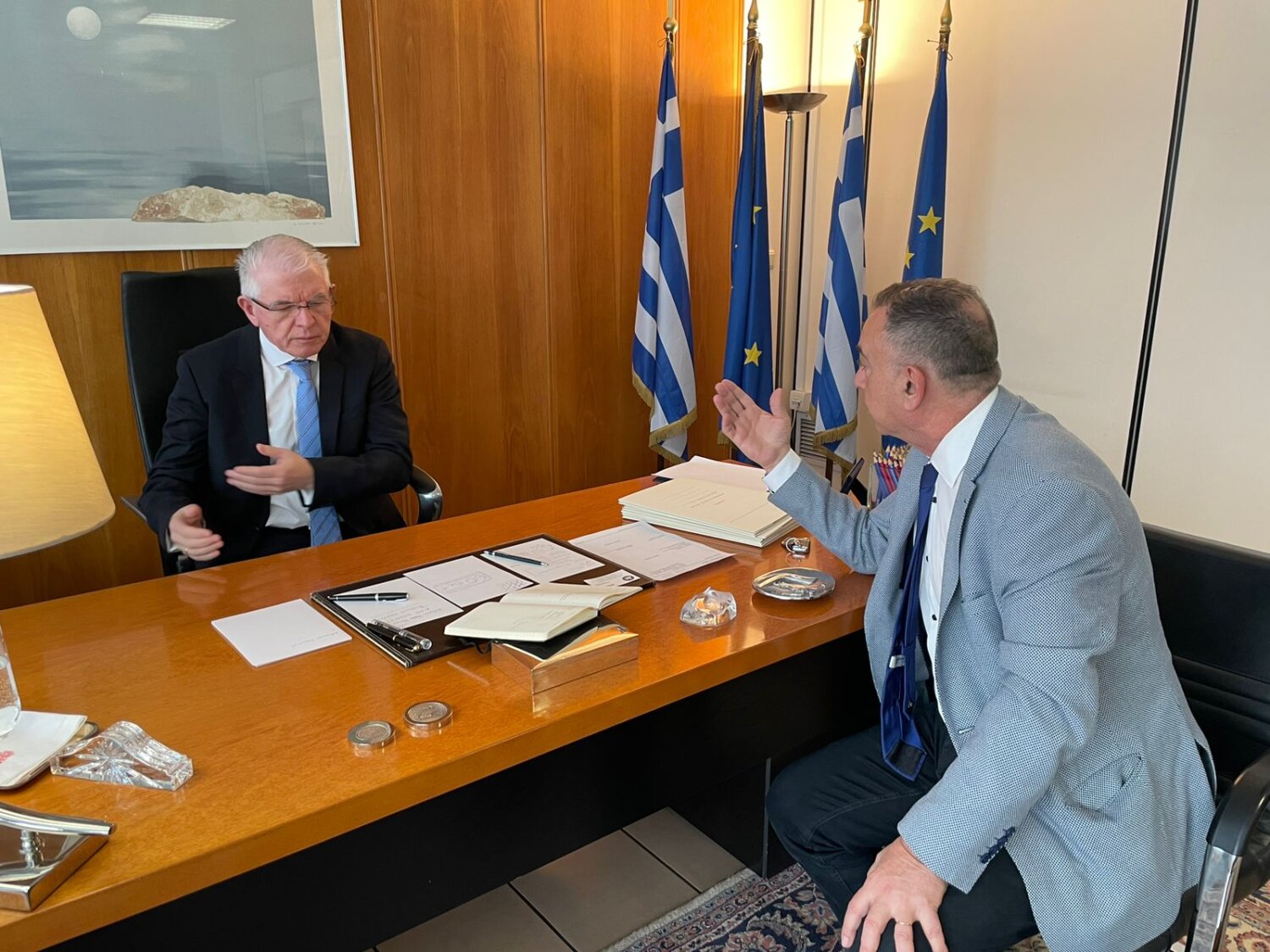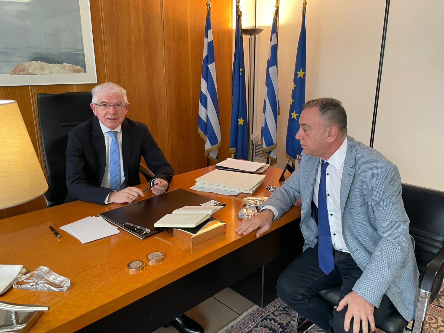 Τέλος, οι δυο άνδρες δεσμεύτηκαν να βρίσκονται σε ανοιχτή επικοινωνία για την επίλυση των προβλημάτων των παραγωγών και την ενίσχυση του εισοδήματός τους.