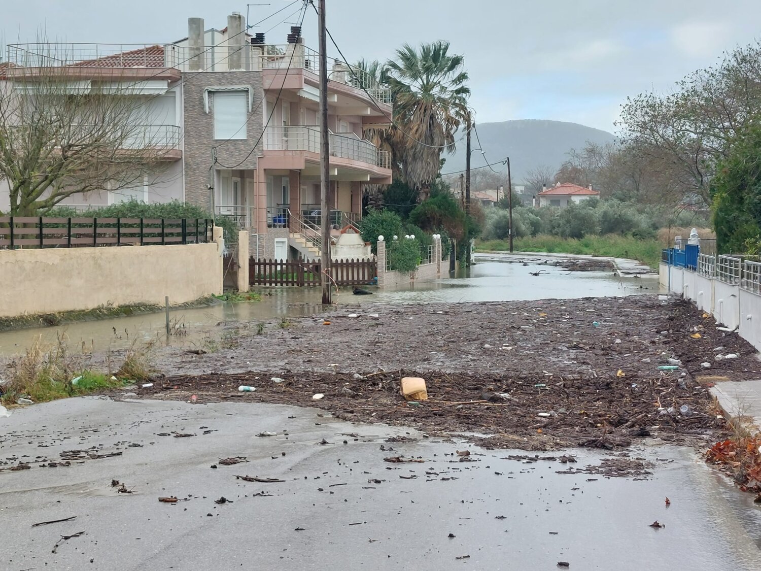 Χαρακτηριστικές είναι οι εικόνες που έρχονται από τον Αγιόκαμπο Δ. Αγιάς, όπου ο παραλιακός δρόμος έχει καλυφθεί σε σημεία από φερτά υλικά, ενώ δεν λείπουν και οι παρακείμενοι δρόμοι με το νερό να παραμένει συγκεντρωμένο έξω από οικίες.