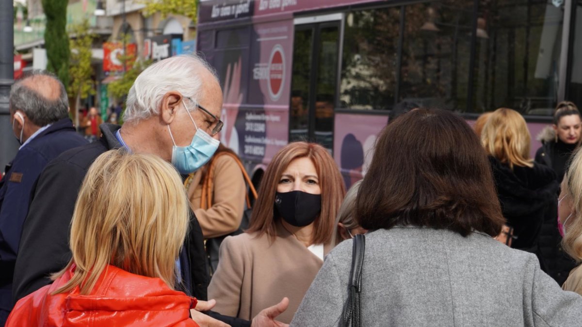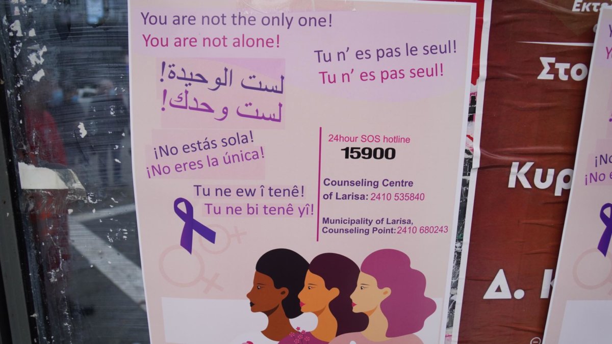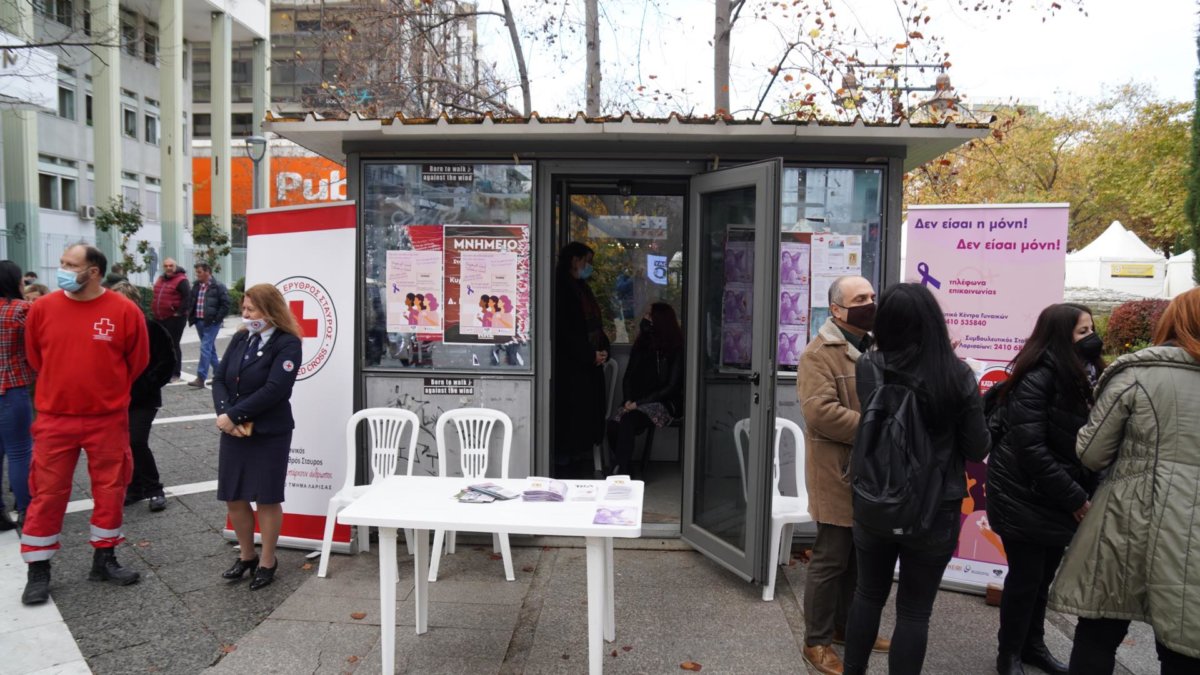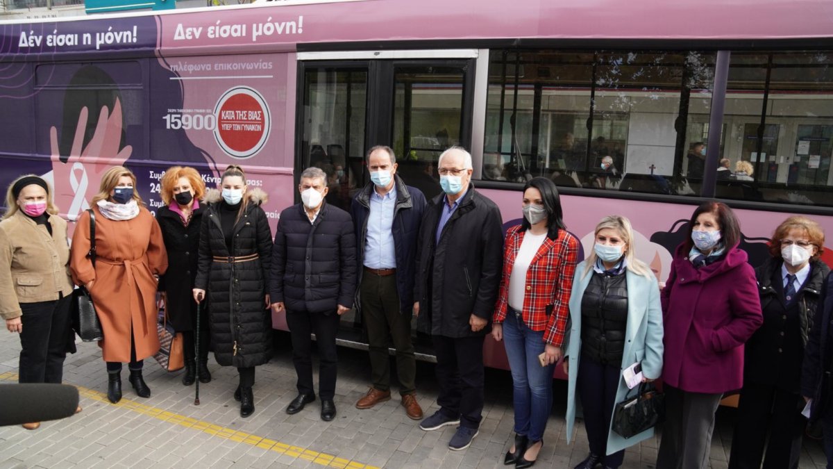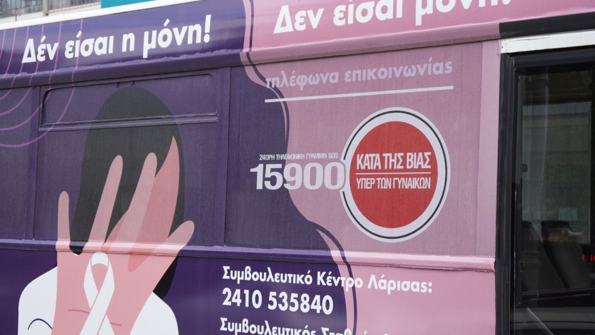 Έτσι, στο πλαίσιο των δράσεων, το πρωί πραγματοποιήθηκε στην Κεντρική Πλατεία Λάρισας η παρουσίαση του λεωφορείου του Αστικού ΚΤΕΛ, που μεταφέρει το μήνυμα «ΔΕΝ ΕΙΣΑΙ Η ΜΟΝΗ» «ΔΕΝ ΕΙΣΑΙ ΜΟΝΗ» και στο οποίο εμφανίζονται τα τηλέφωνα επικοινωνίας της εθνικής γραμμής SOS-15900, του Συμβουλευτικού Κέντρου και του Συμβουλευτικού Σταθμού Λάρισας. Παράλληλα, στην Κεντρική Πλατεία της πόλης λειτουργεί περίπτερο με ενημερωτικό υλικό.