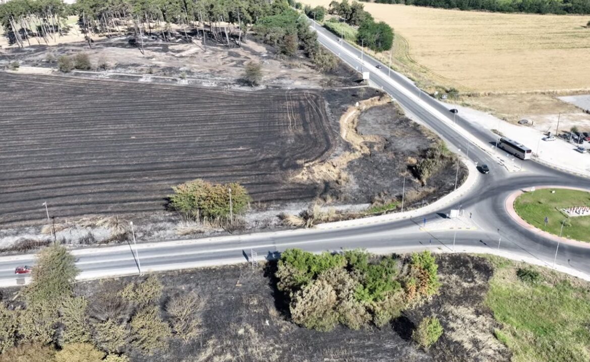 Αρκετά μεγάλη έκταση καμένης γης άφησε πίσω της η φωτιά που είχε ξεσπάσει πριν 10 μέρες (14 Ιουνίου) στην περιοχή του Αγίου Θωμά στη Λάρισα.