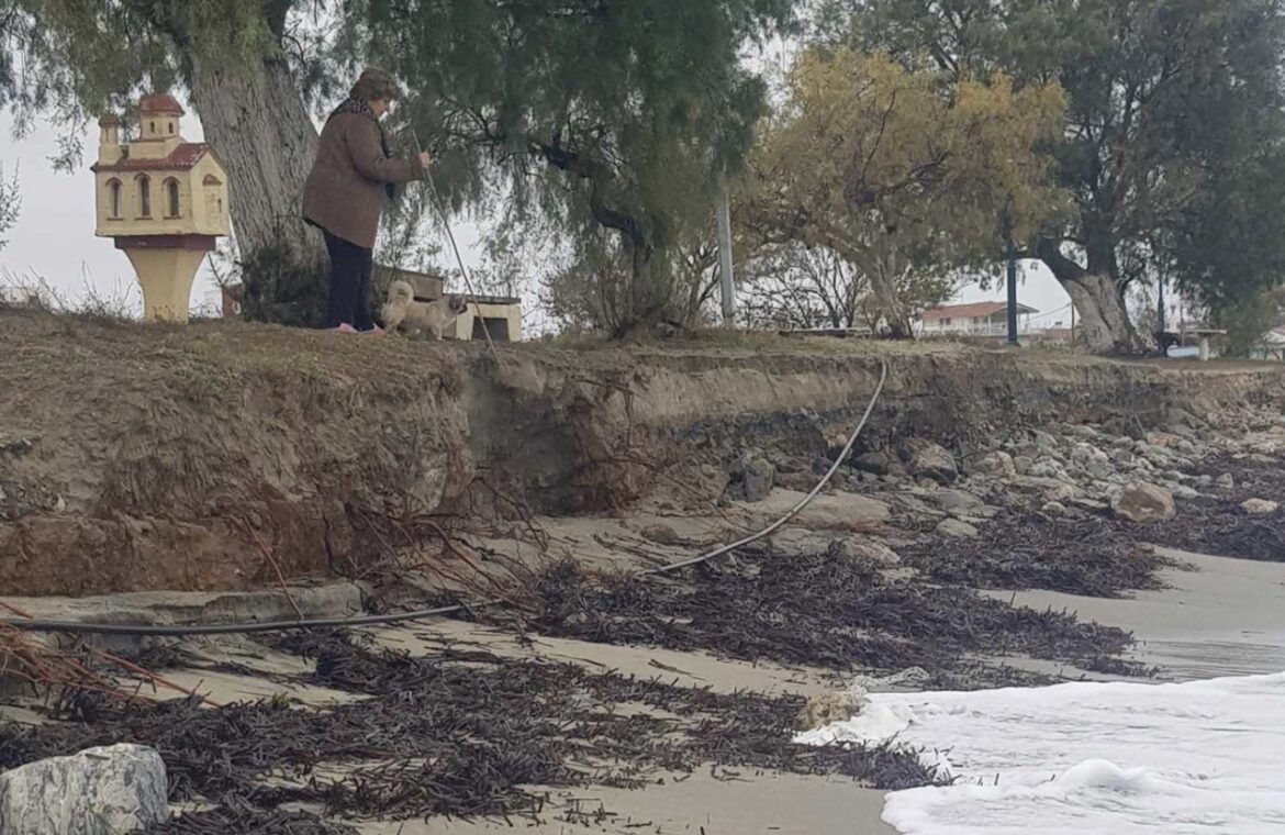 Η θάλασσα “τρώει” την παραλία με αποτέλεσμα να φτάνει στον δρόμο και να υπάρχει κίνδυνος να κοπεί και να έχουμε πλημμυρικά φαινόμενα και να κινδυνέψουν σπίτια !