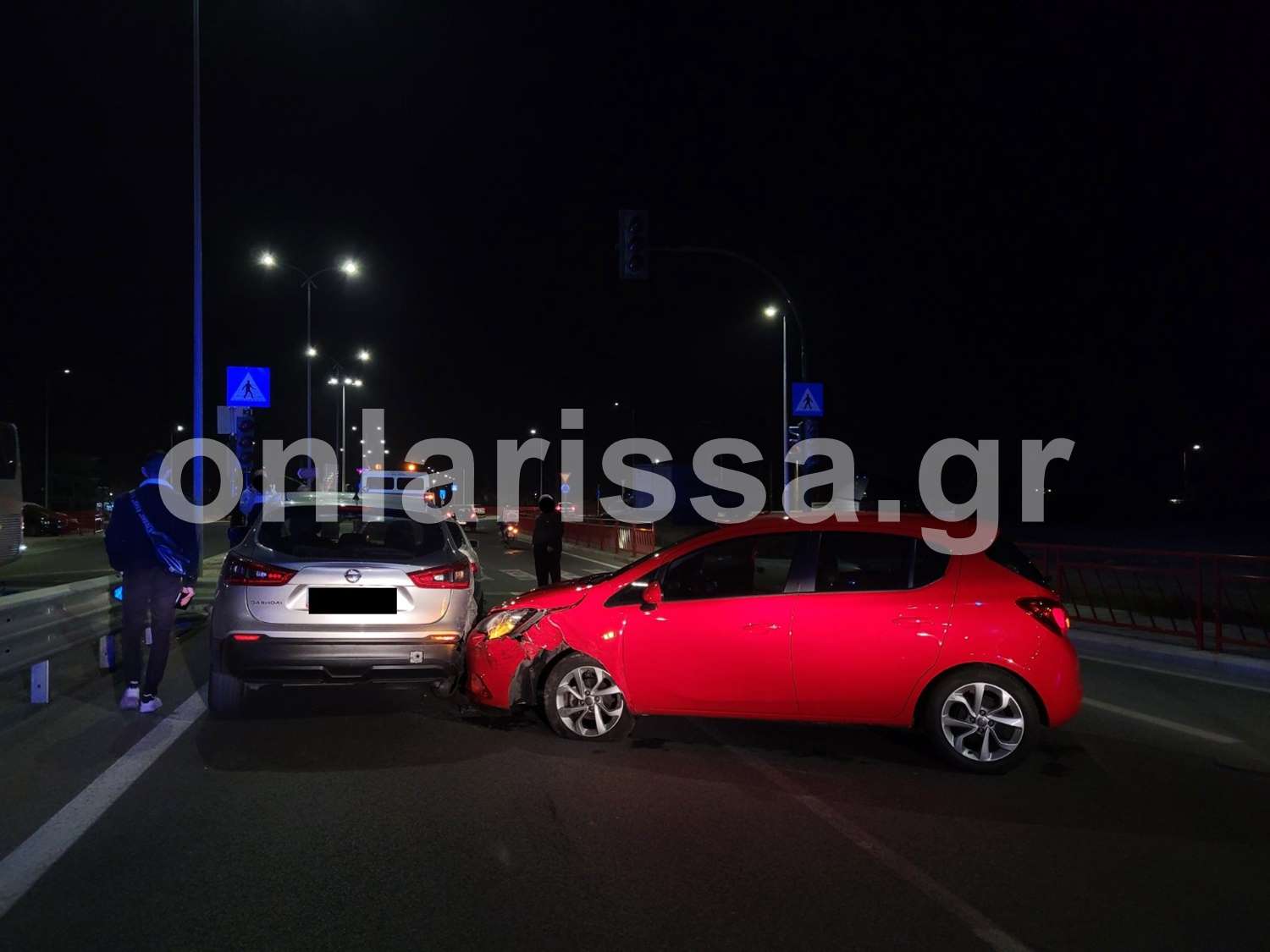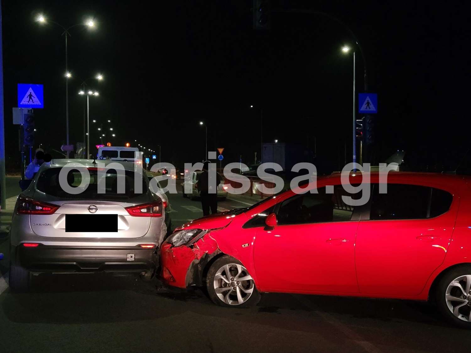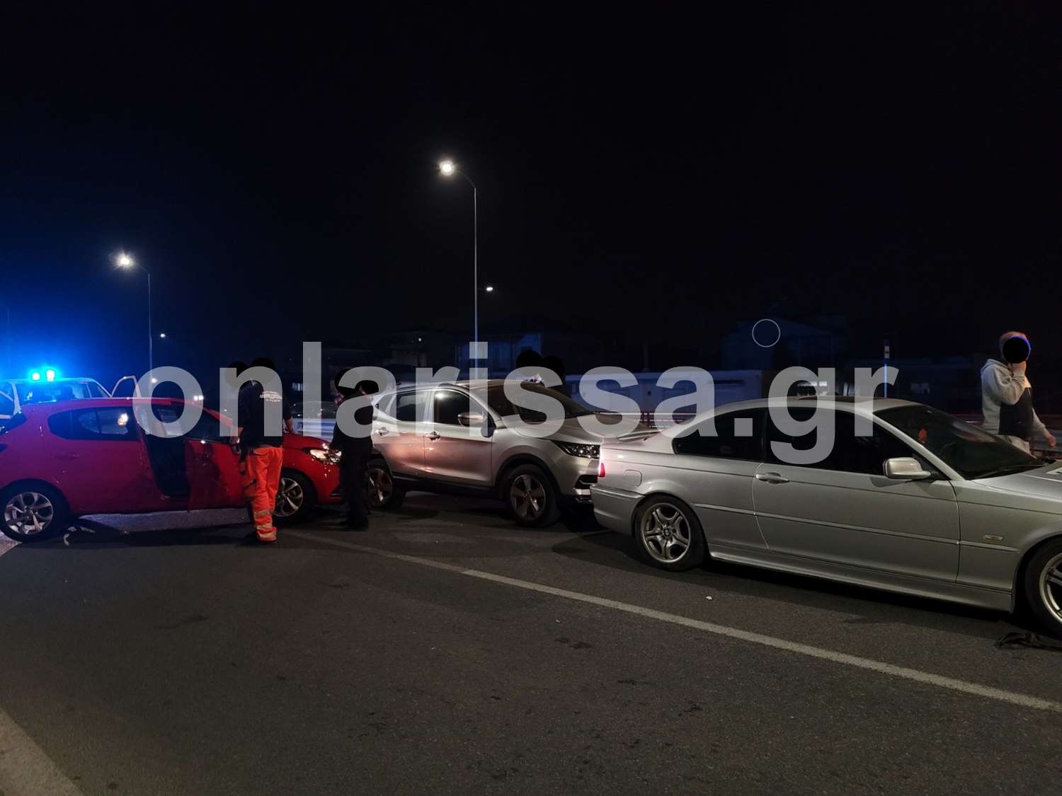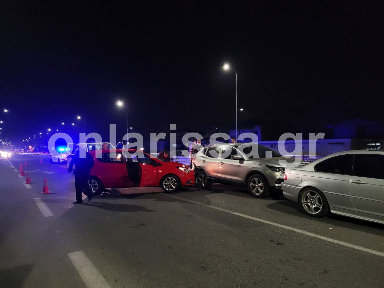 Τροχαίο ατύχημα με καραμπόλα τριών αυτοκινήτων σημειώθηκε απόψε, το βράδυ της Καθαράς Δευτέρας στη Λάρισα.