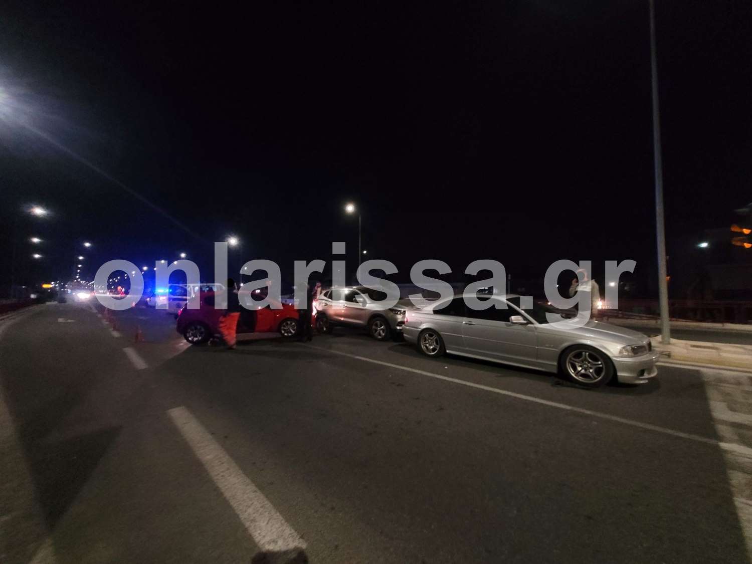 Ειδικότερα, το συμβάν έλαβε χώρα τα πρώτα λεπτά μετά τις 9 μ.μ. στην Παλαιά Εθνική Οδό Αθηνών – Θεσσαλονίκης, πριν τον κυκλικό κόμβο που συνδέεται με την οδό Αγιάς και στο ρεύμα προς Θεσσαλονίκη, όπου τα τρία εικονιζόμενα οχήματα συγκρούστηκαν υπό αδιευκρίνιστες έως στιγμής συνθήκες.