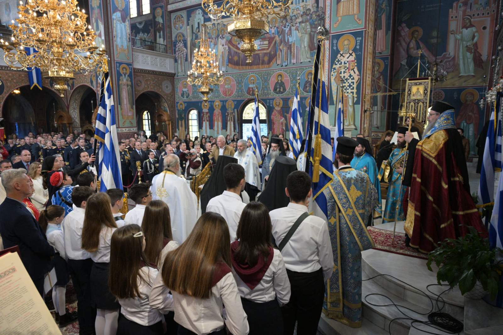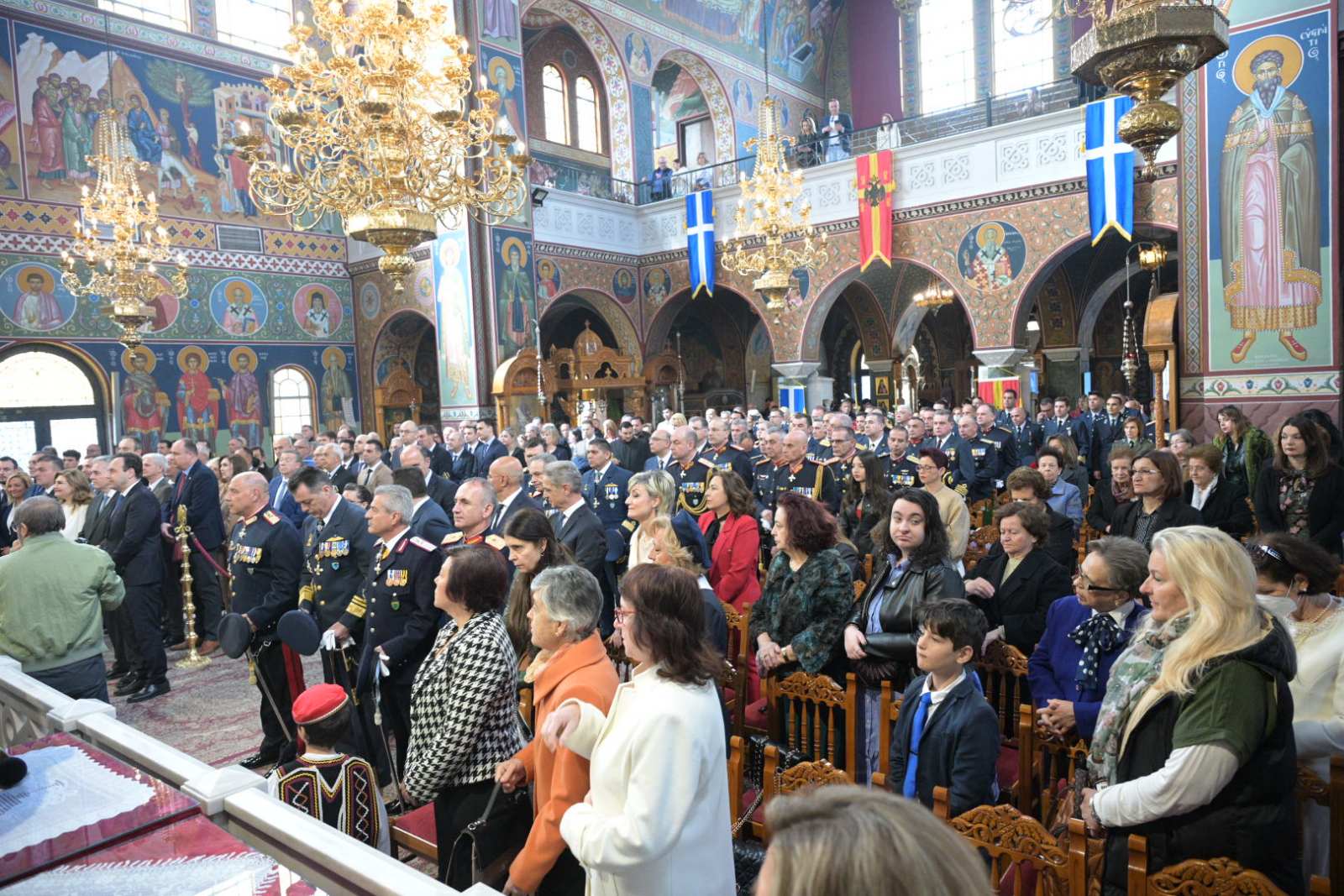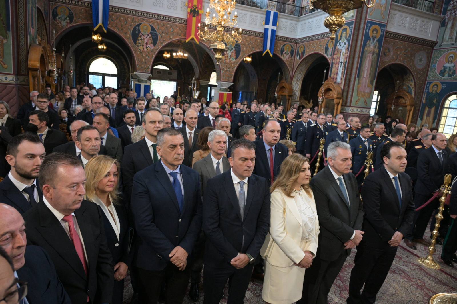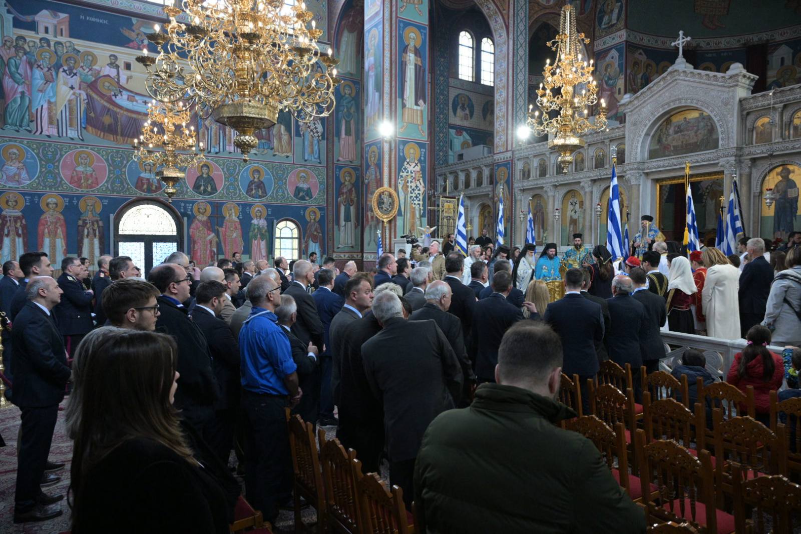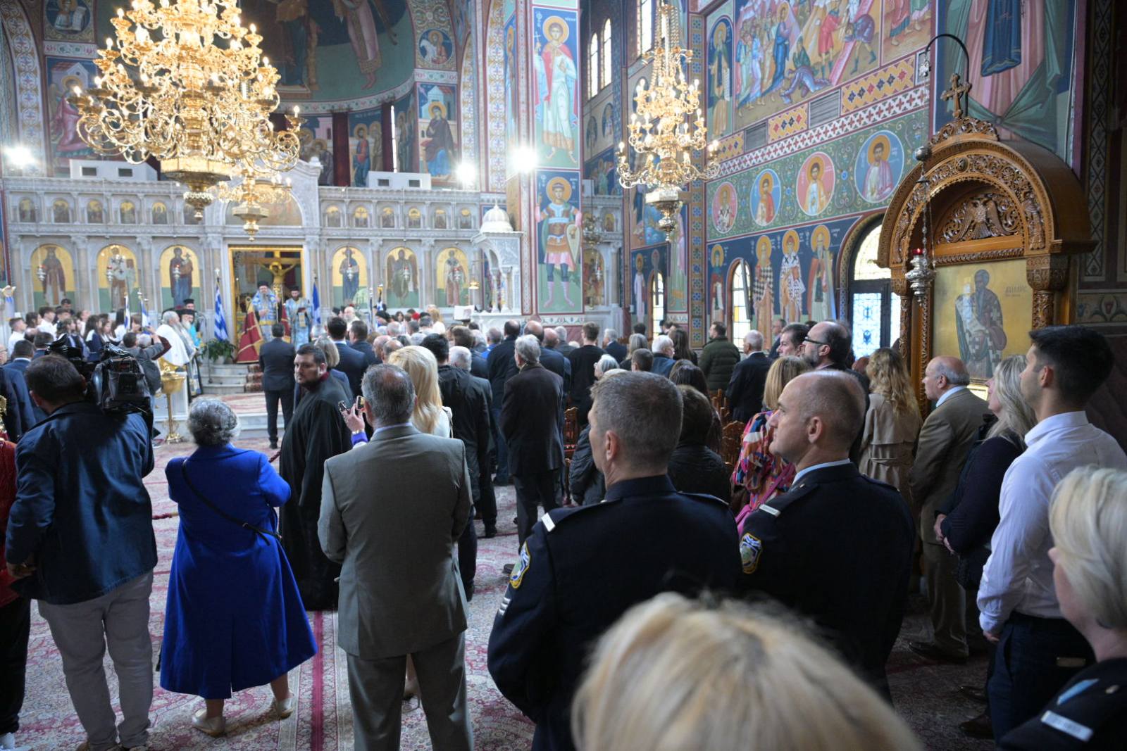 Νωρίτερα, στον Ιερό Μητροπολιτικό Ναό του Αγίου Αχιλλίου τελέστηκε δοξολογία στην οποία χοροστάτησε ο Μητροπολίτης Λαρίσης και Τυρνάβου κ. Ιερώνυμος, παρουσία εκπροσώπων πολιτικών και στρατιωτικών Αρχών του τόπου.