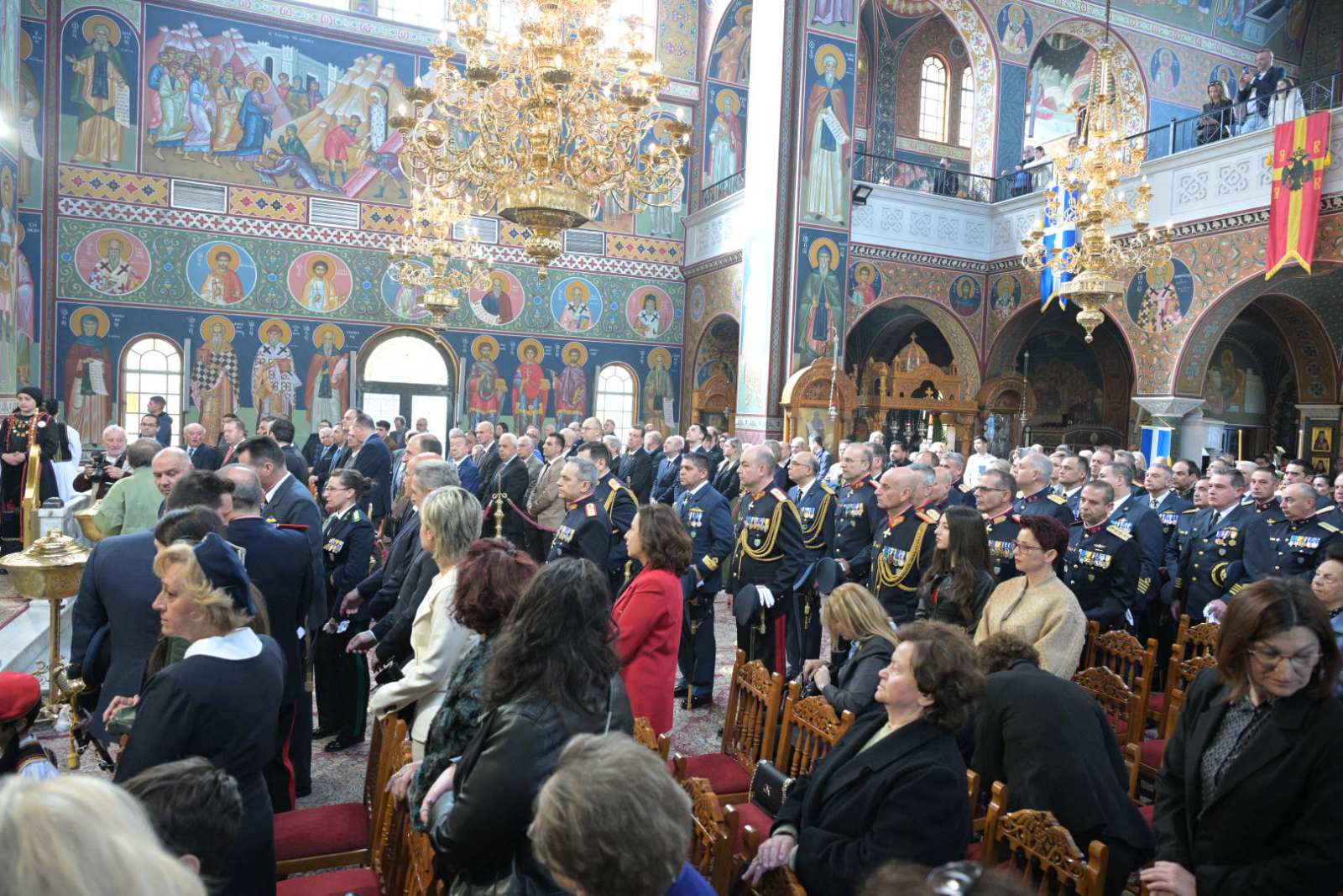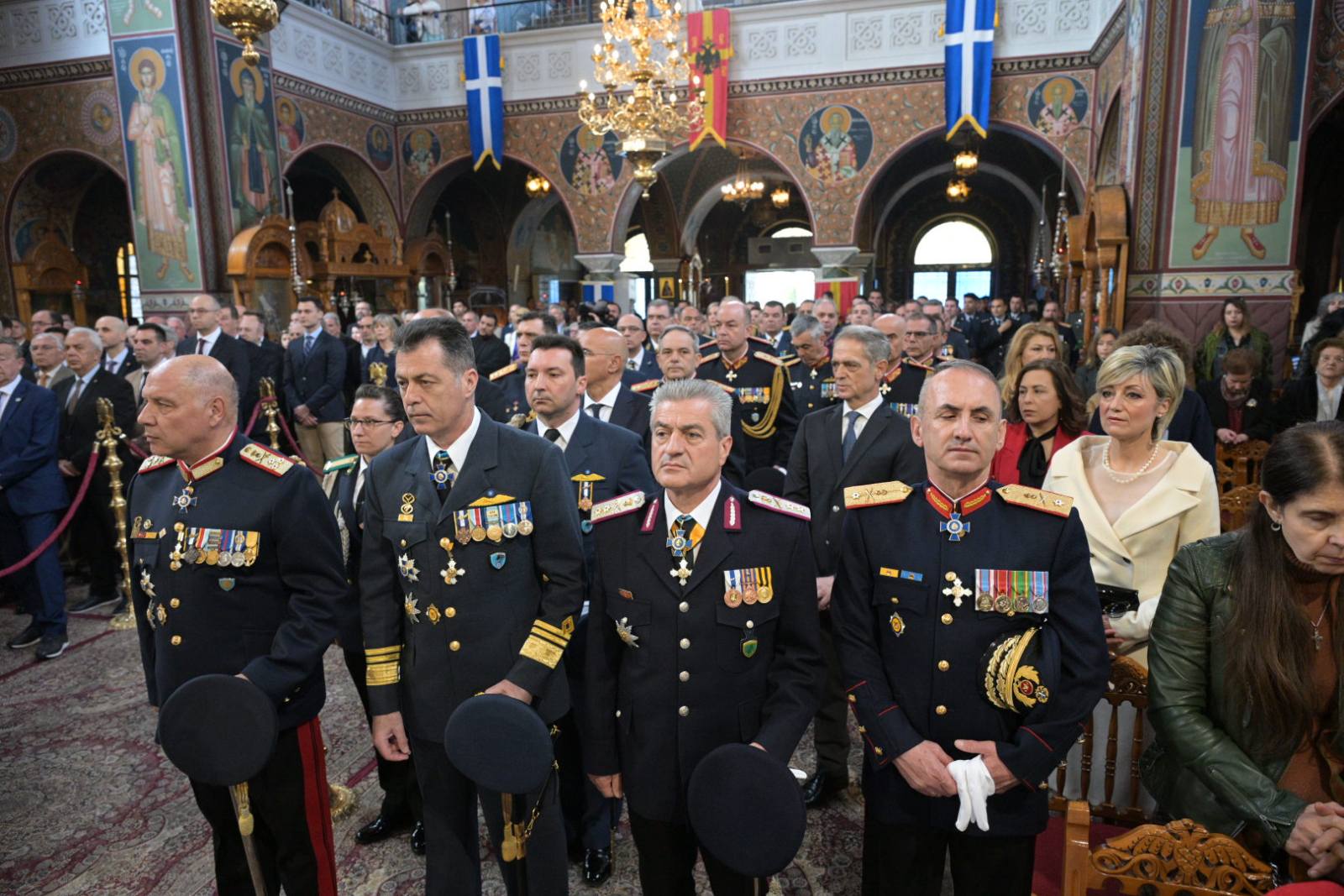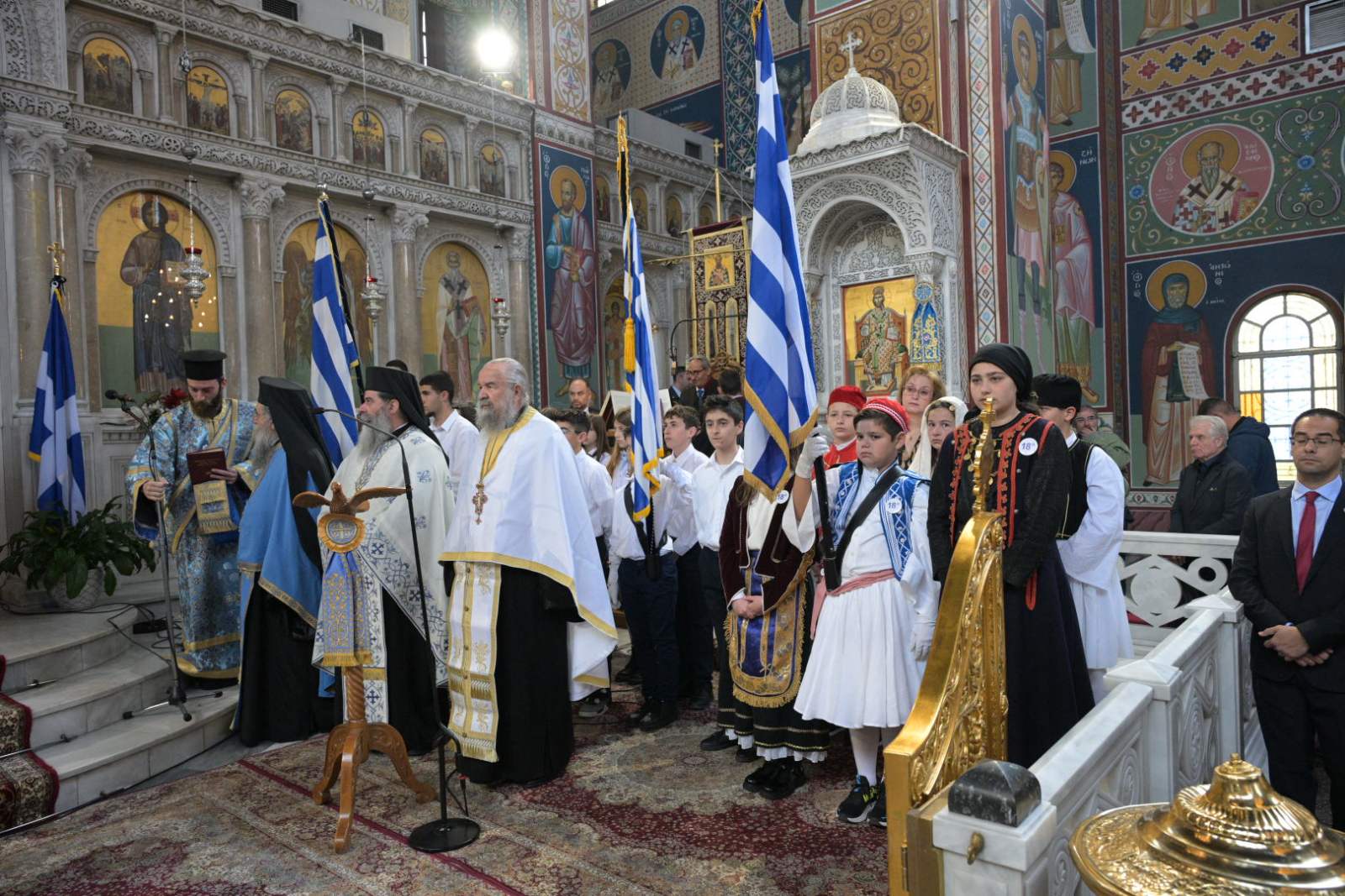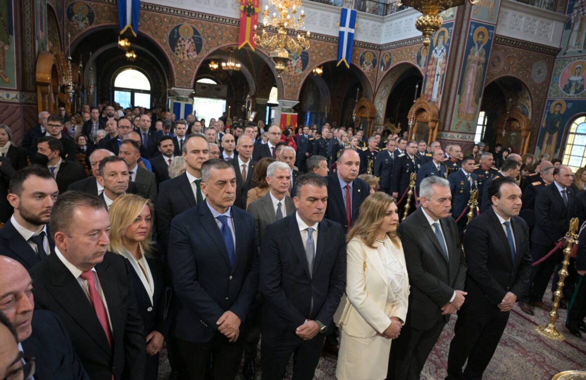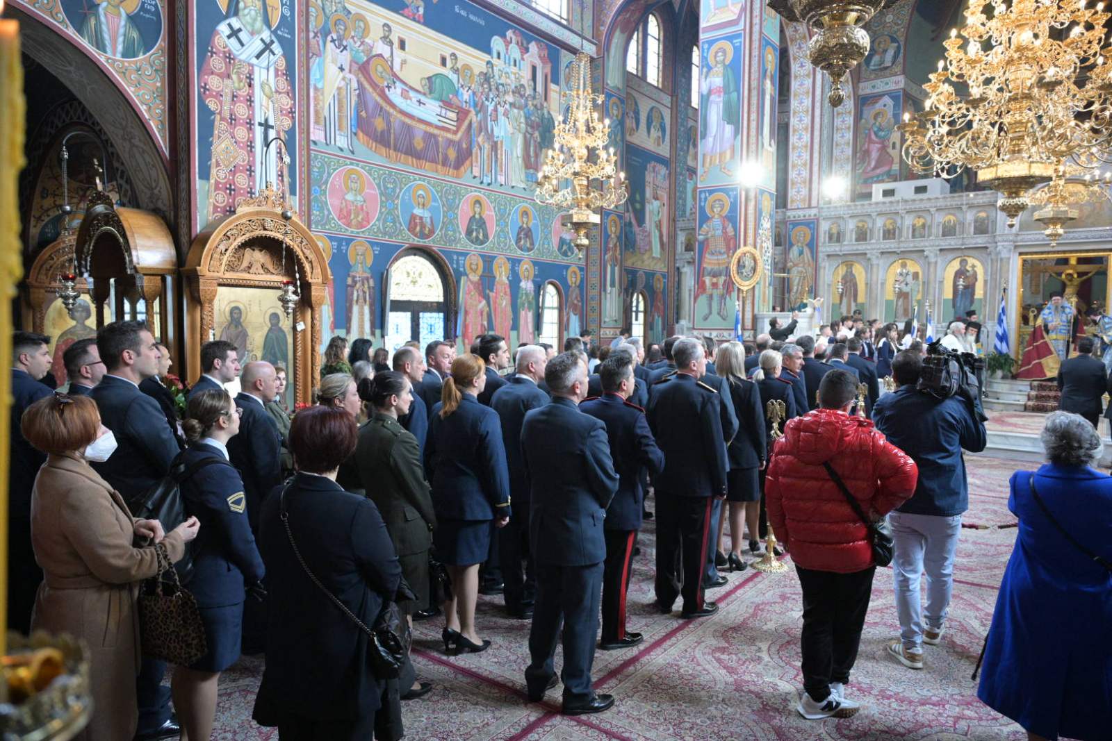 Νωρίτερα, στον Ιερό Μητροπολιτικό Ναό του Αγίου Αχιλλίου τελέστηκε δοξολογία στην οποία χοροστάτησε ο Μητροπολίτης Λαρίσης και Τυρνάβου κ. Ιερώνυμος, παρουσία εκπροσώπων πολιτικών και στρατιωτικών Αρχών του τόπου.