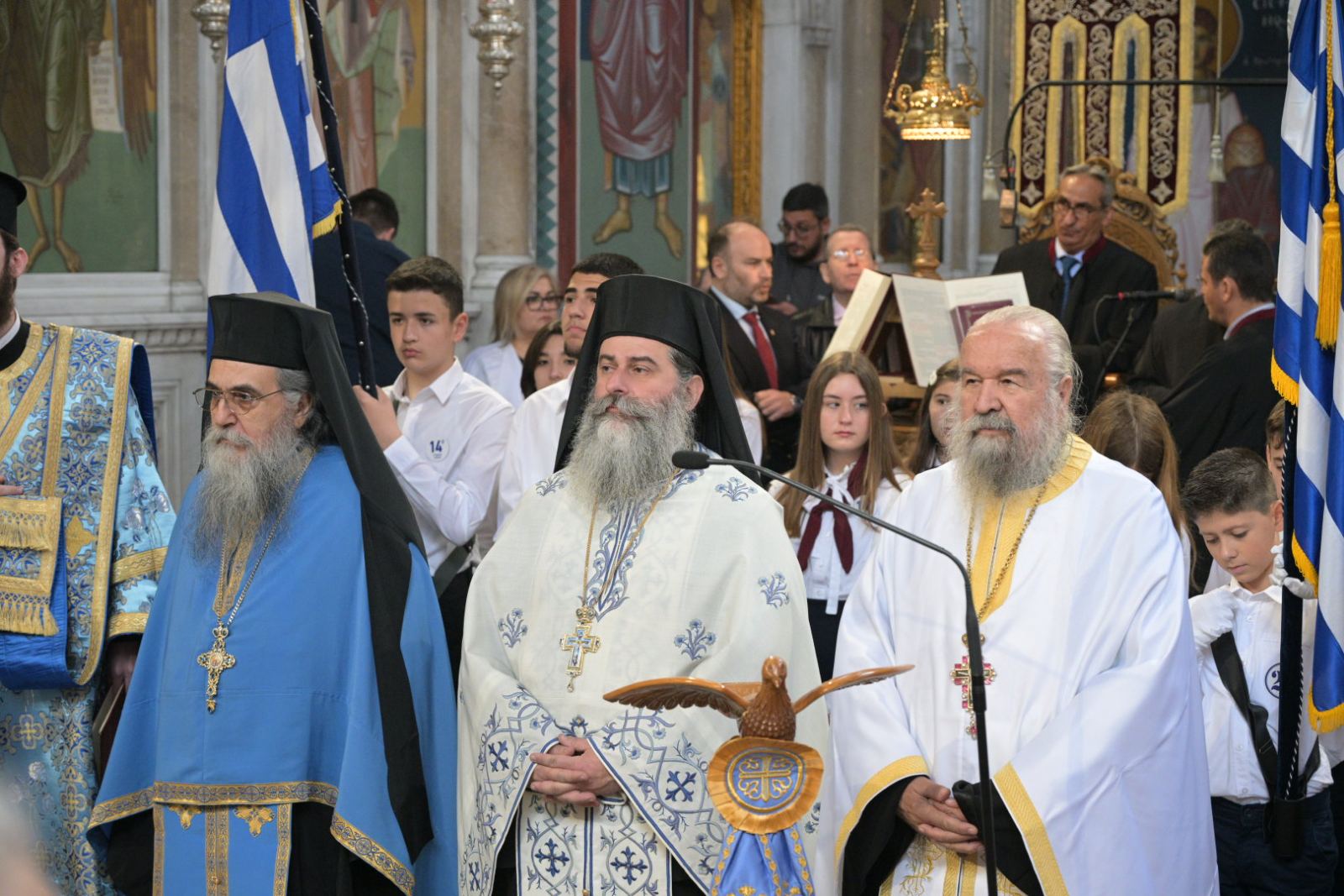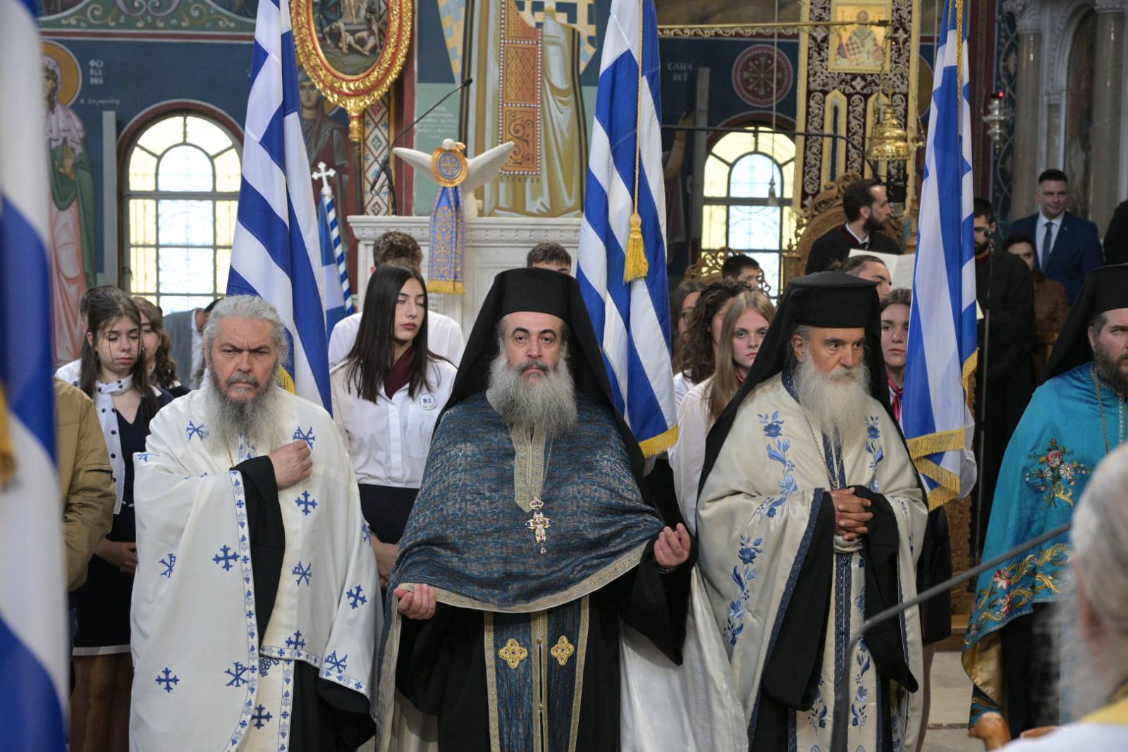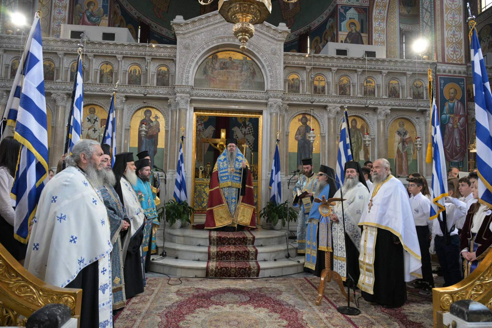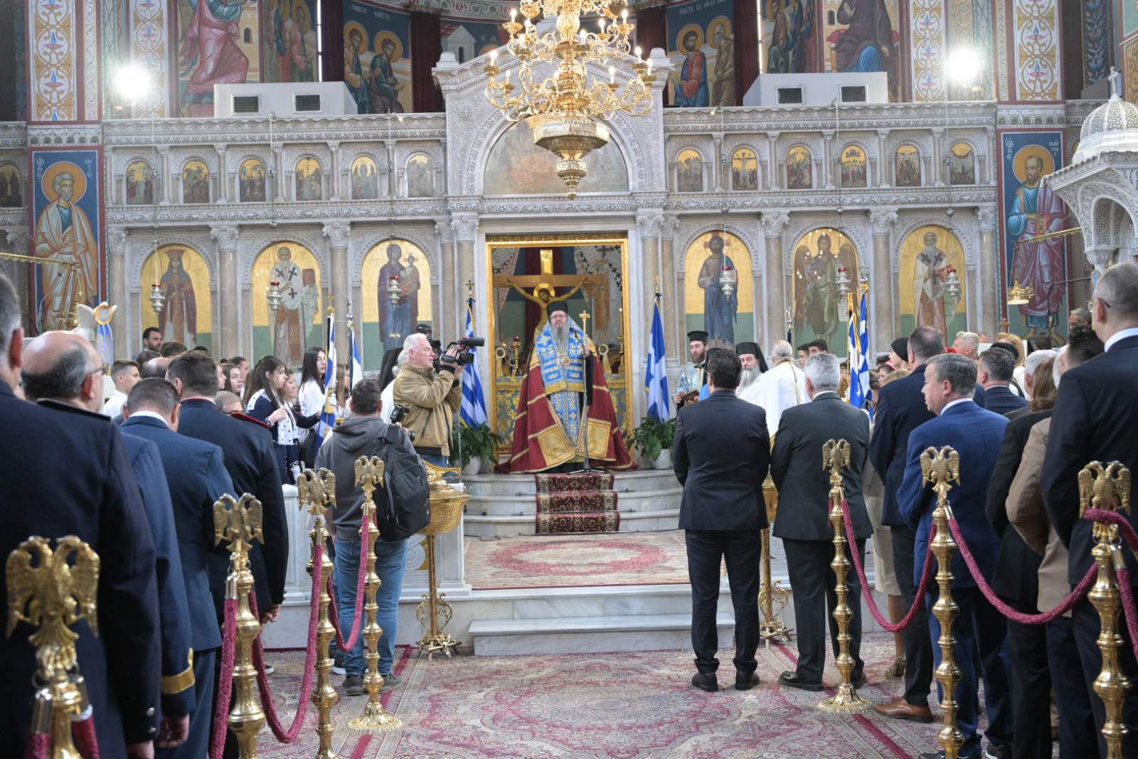 Νωρίτερα, στον Ιερό Μητροπολιτικό Ναό του Αγίου Αχιλλίου τελέστηκε δοξολογία στην οποία χοροστάτησε ο Μητροπολίτης Λαρίσης και Τυρνάβου κ. Ιερώνυμος, παρουσία εκπροσώπων πολιτικών και στρατιωτικών Αρχών του τόπου.