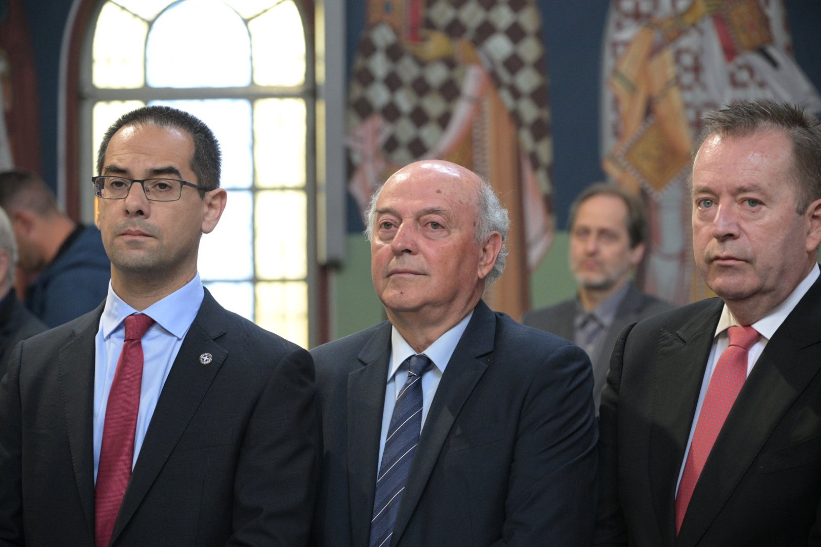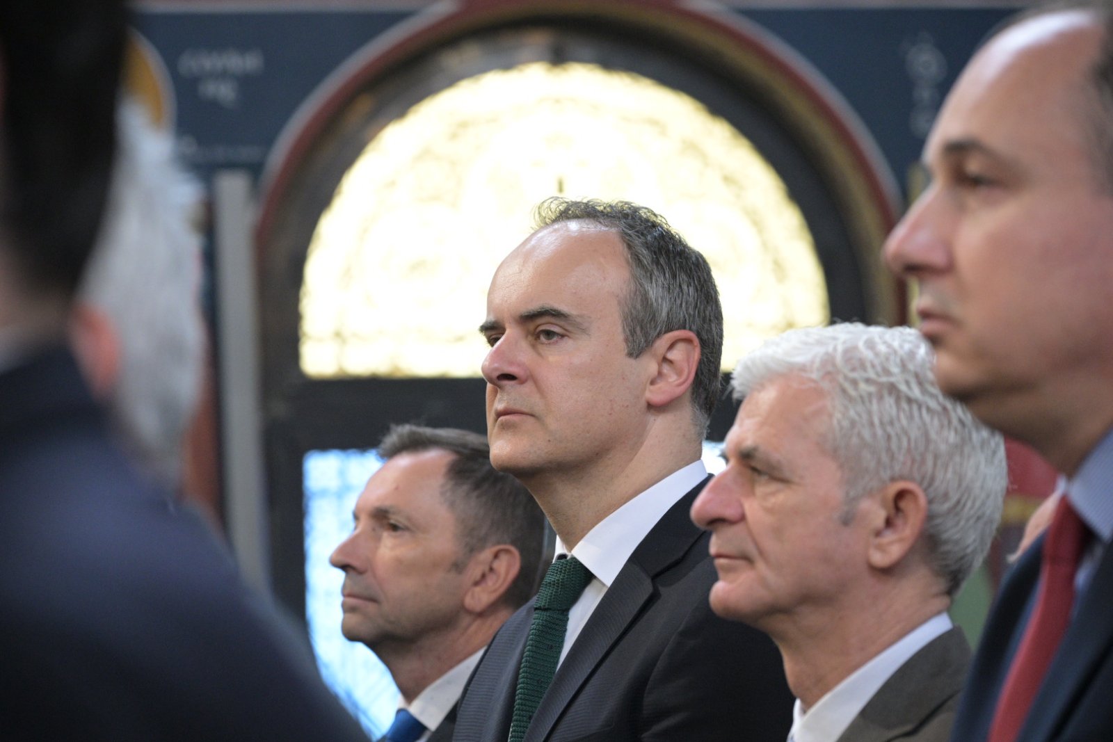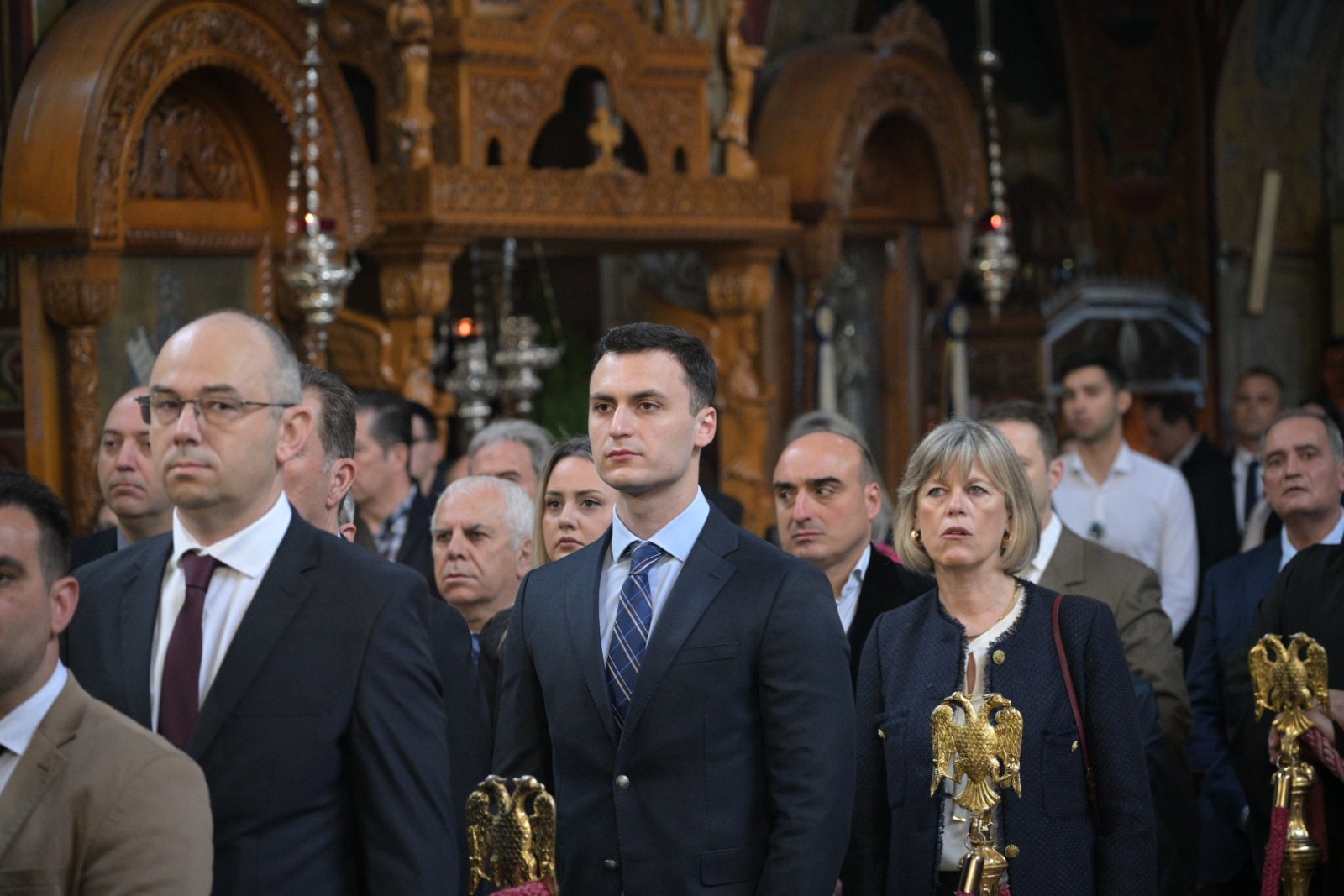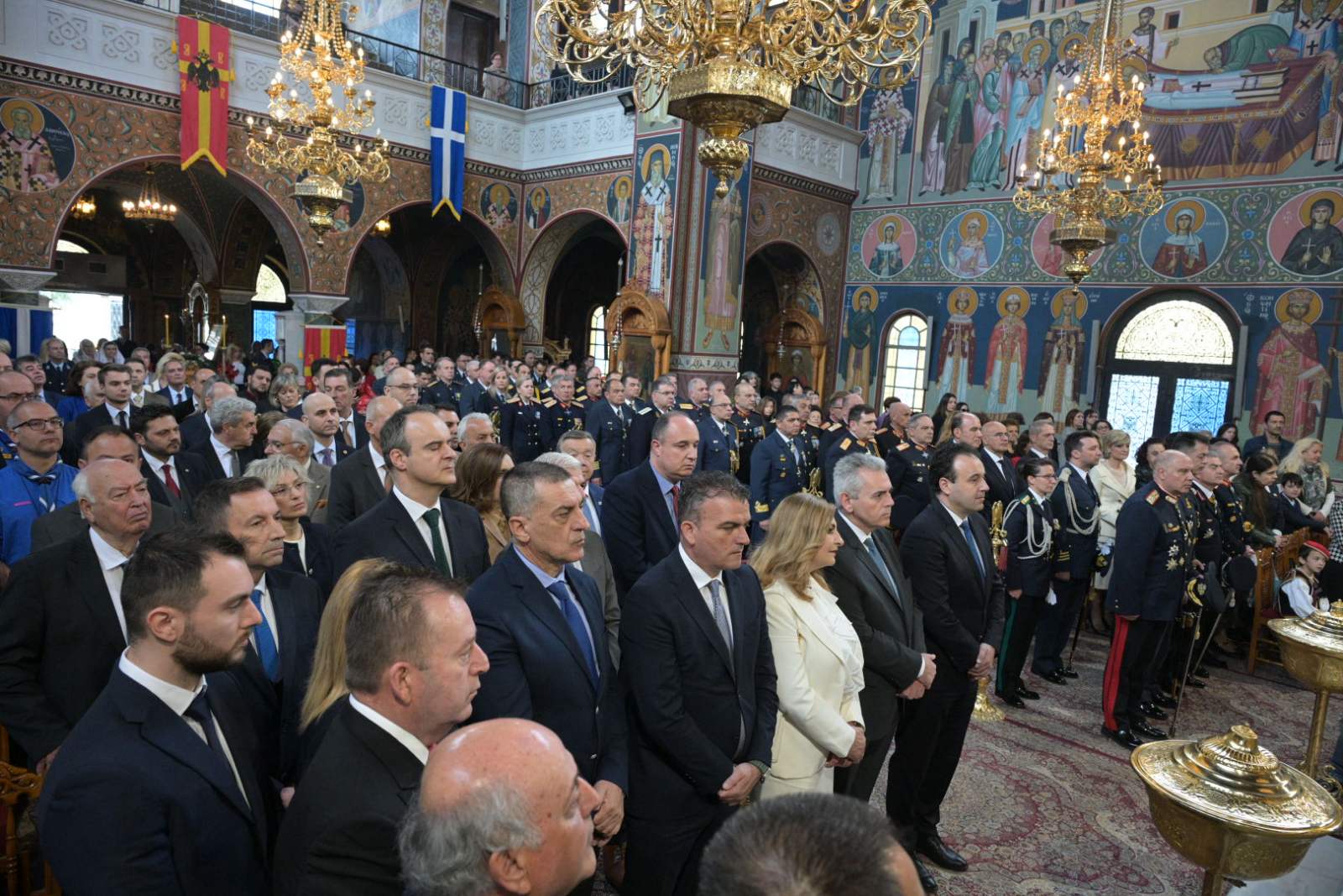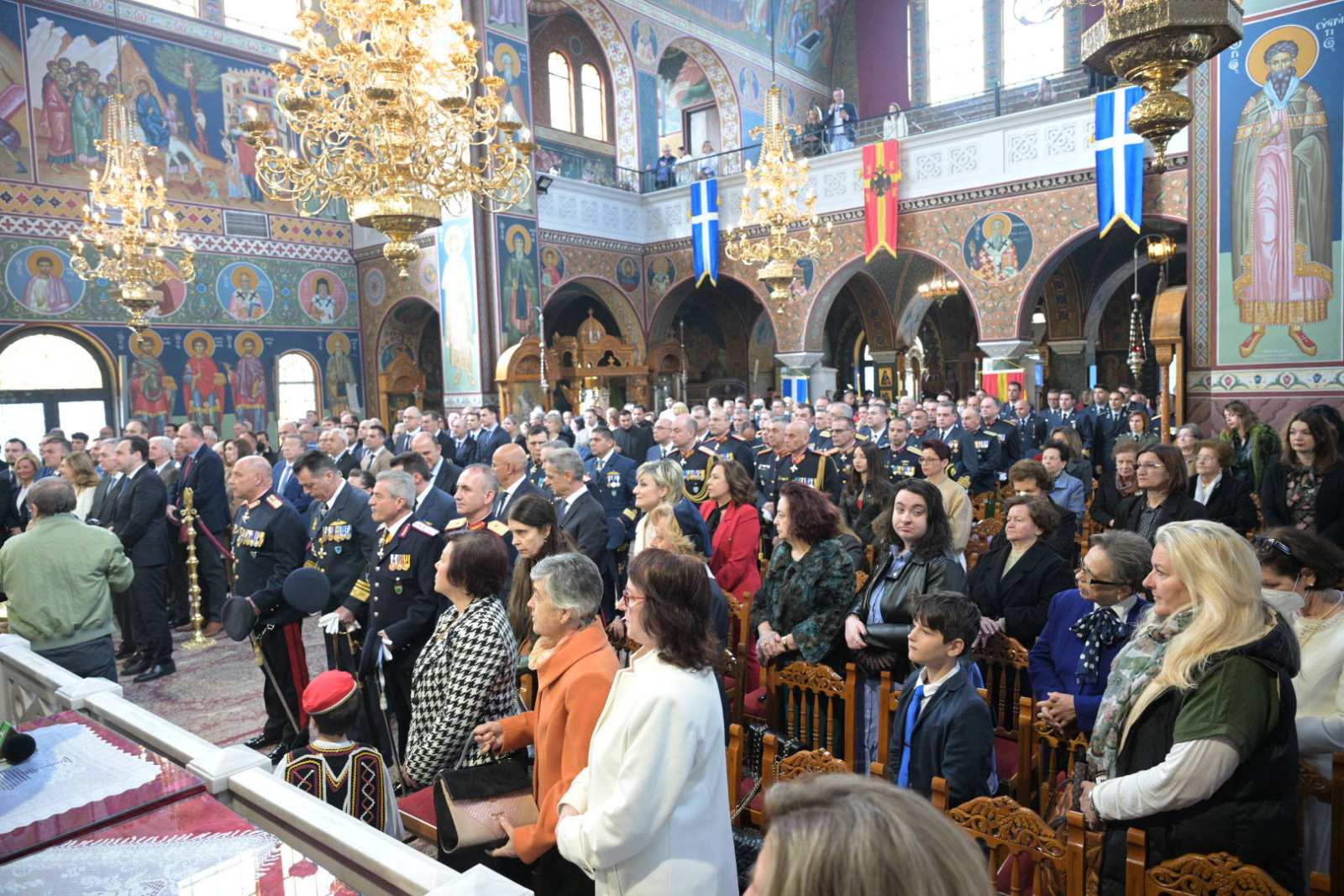 Νωρίτερα, στον Ιερό Μητροπολιτικό Ναό του Αγίου Αχιλλίου τελέστηκε δοξολογία στην οποία χοροστάτησε ο Μητροπολίτης Λαρίσης και Τυρνάβου κ. Ιερώνυμος, παρουσία εκπροσώπων πολιτικών και στρατιωτικών Αρχών του τόπου.