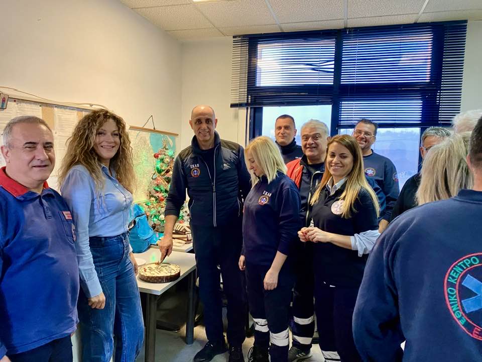Ο λόγος για τους εργαζόμενους στο ΕΚΑB, οι οποίοι αντάλλαξαν ευχές κατά την πρωινή βάρδια που βρίσκεται σε εξέλιξη.