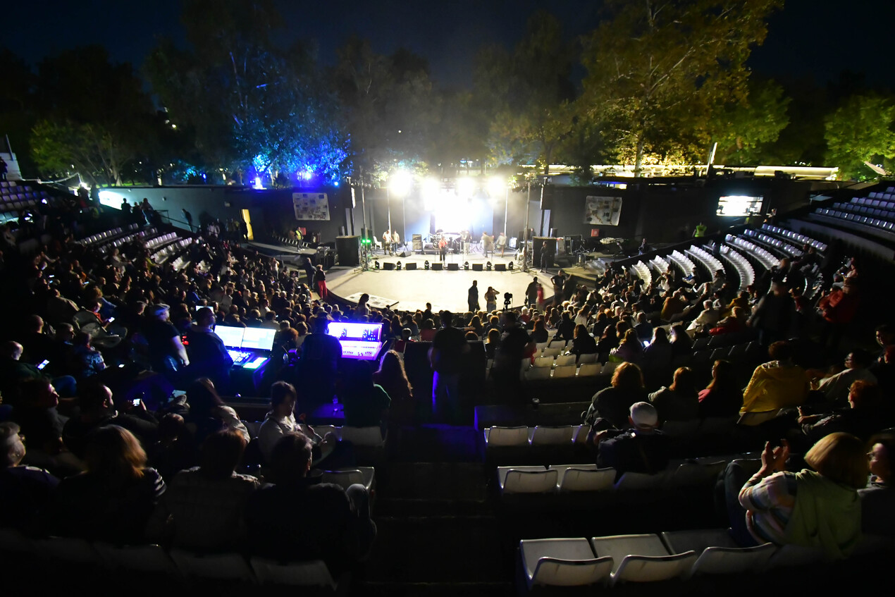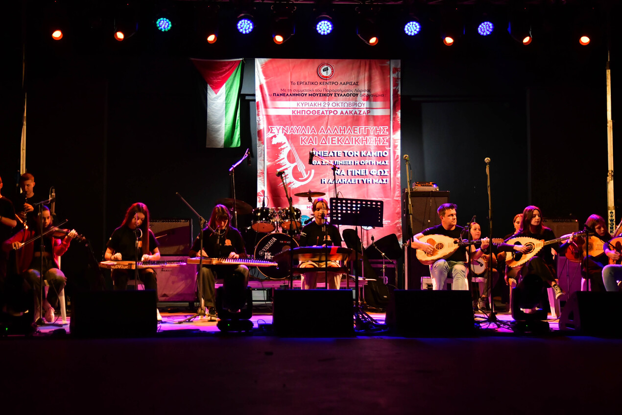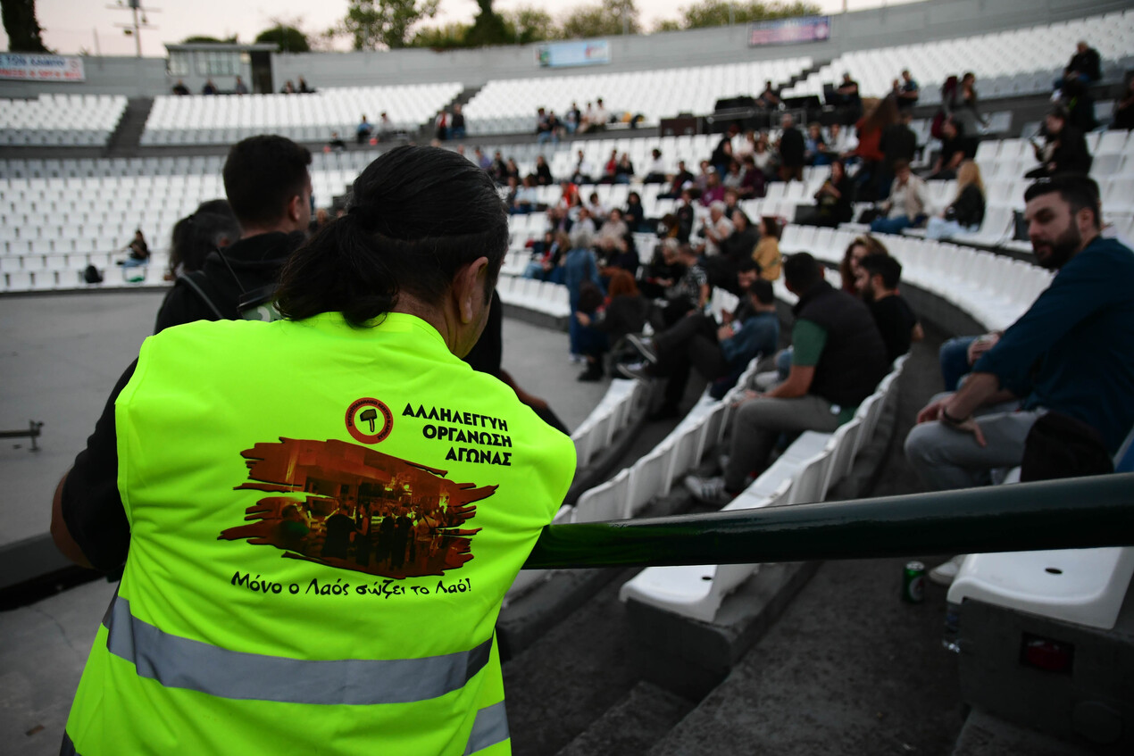 Πλήθος κόσμου συμμετέχει στη συναυλία Αλληλεγγύης και Διεκδίκησης για τους πλημμυροπαθείς που πραγματοποιείται σήμερα το βράδυ στο Κηποθέατρο Αλκαζάρ.