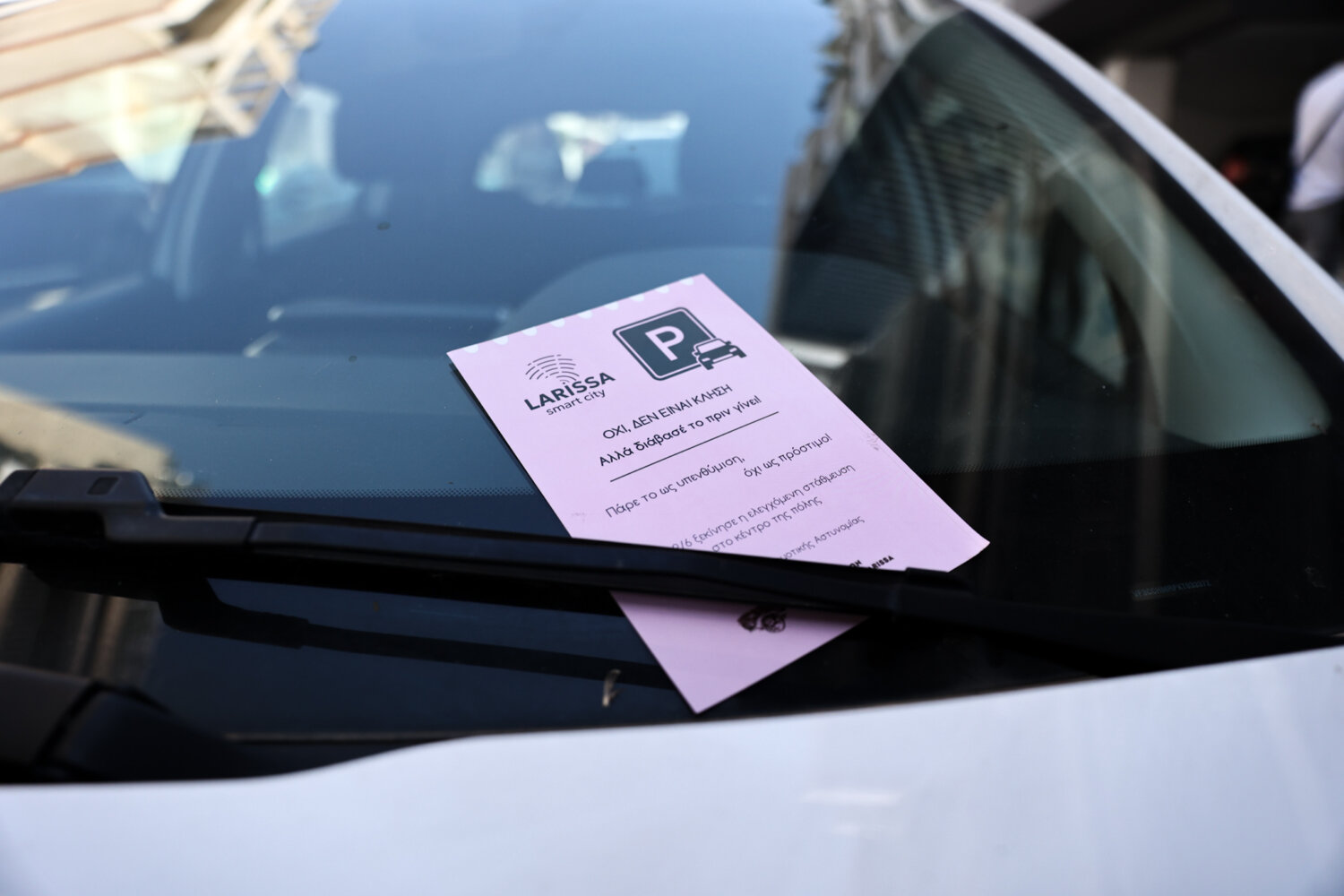 Παράλληλα, ο Δήμος Λαρισαίων «τράβηξε» τα βλέμματα των οδηγών τοποθετώντας οδηγίες που θύμιζαν κλήσεις στα παρμπρίζ των «παράνομων» οχημάτων.