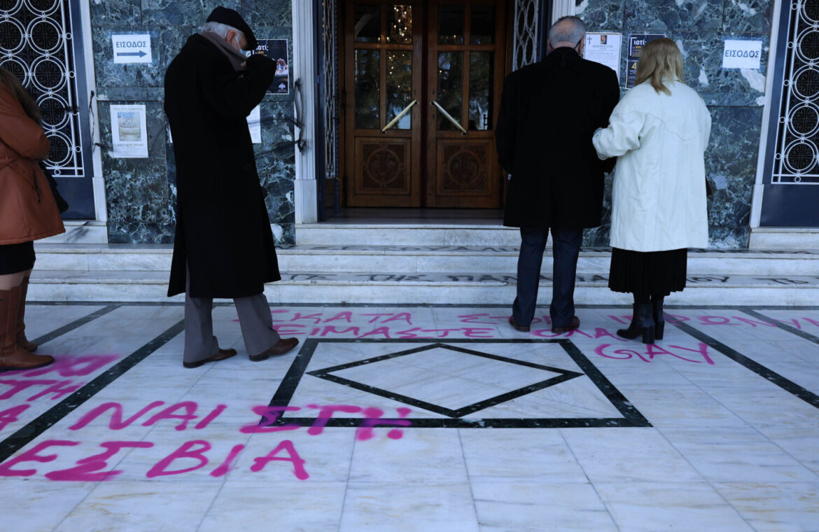 Υβριστικά συνθήματα έγραψαν άγνωστοι στους τοίχους και τα σκαλοπάτια του Μητροπολιτικού Ναού Αγίου Αχιλλίου, στη Λάρισα, τα οποία έγιναν αντιληπτά νωρίς το πρωί της Κυριακής.