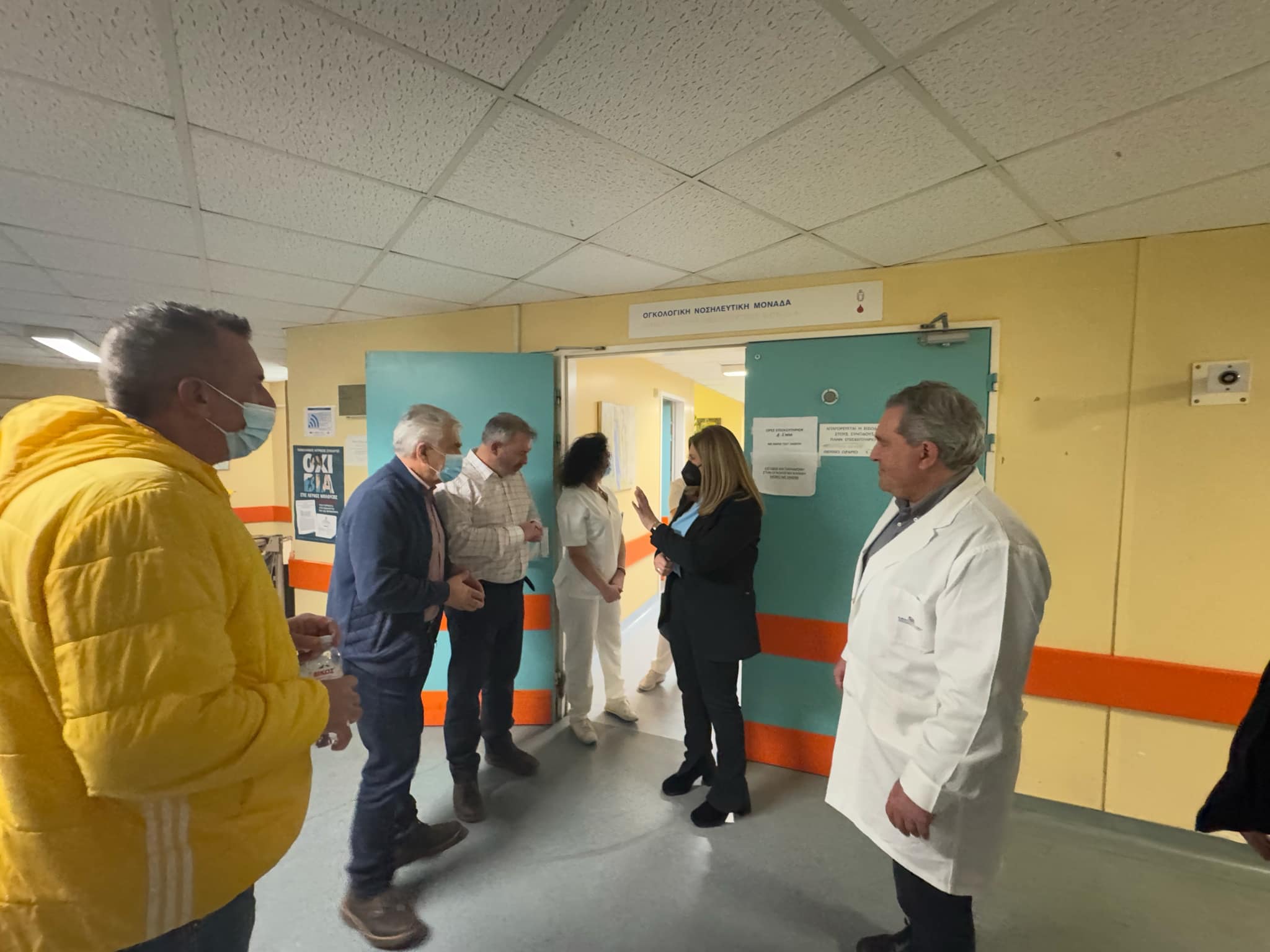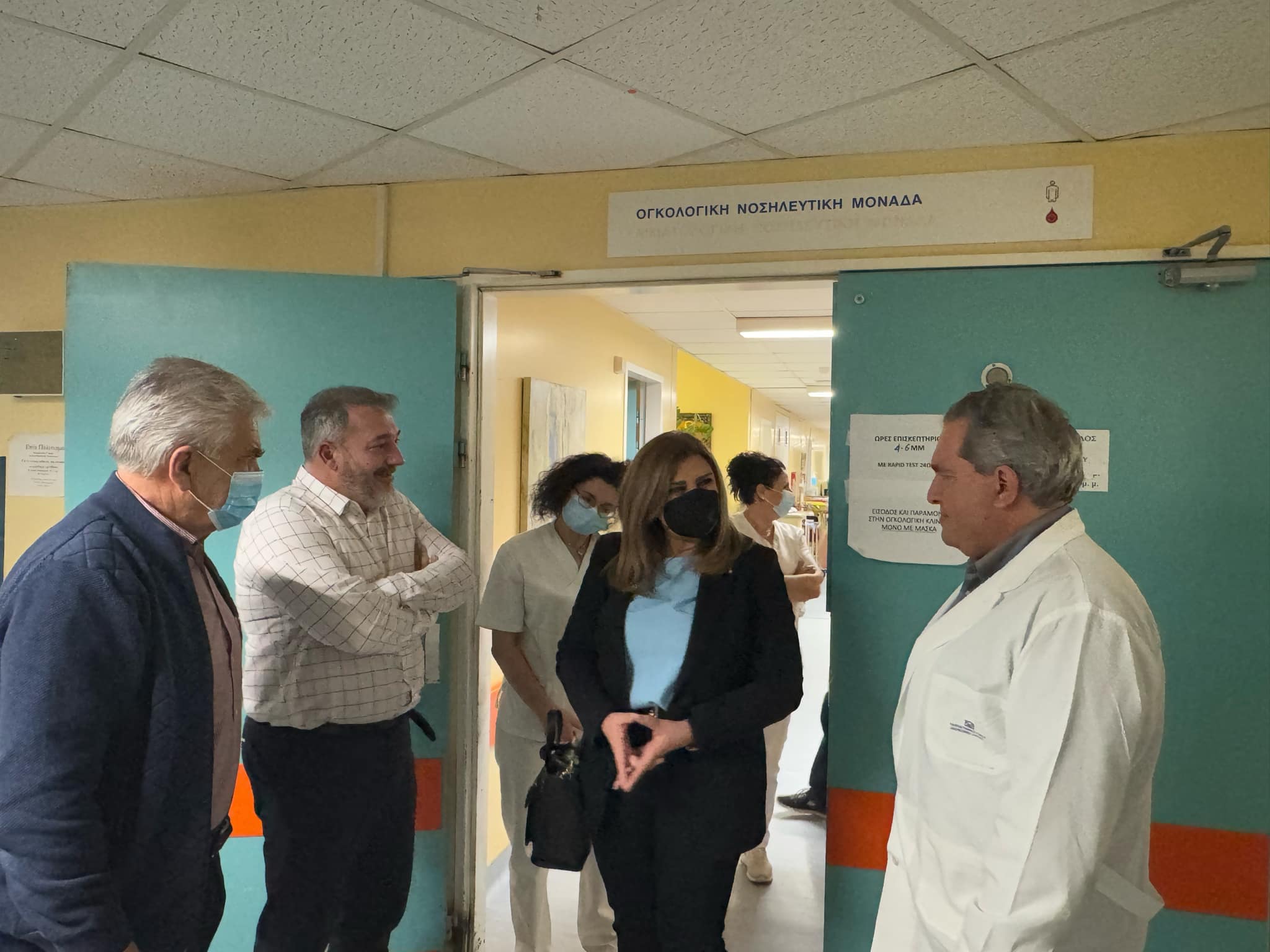 Διαδοχικές συναντήσεις ισχυρού συμβολισμού, με αφορμή την Παγκόσμια Ημέρα ευαισθητοποίησης κατά του καρκίνου, επέλεξε να πραγματοποιήσει η Τομεάρχης Δικαιοσύνης, Θεσμών & Διαφάνειας του ΠΑΣΟΚ-ΚΙΝΑΛ και βουλευτής Λάρισας, Ευαγγελία Λιακούλη, με τον διοικητή του Πανεπιστημιακού Νοσοκομείου Λάρισας κ. Δ. Κατσικονούρη, τον Καθηγητή Παθολογικής Ογκολογίας και Διευθυντή της Παθολογικής Ογκολογικής Κλινικής του Πανεπιστημιακού Νοσοκομείου Λάρισας, κ. Α. Κωτσάκη , τον Καθηγητη Πυρηνικής Ιατρικής κ Π Γεωργούλια και το Σωματείο των Εργαζομένων του Νοσοκομείου εκπροσωπούμενο από τον Πρόεδρο και Γενικό Σύμβουλο της ΠΟΕΔΗΝ, κ. Β. Παπακωνσταντίνου και το μέλος του ΔΣ κ Κώστα Λαρίση.