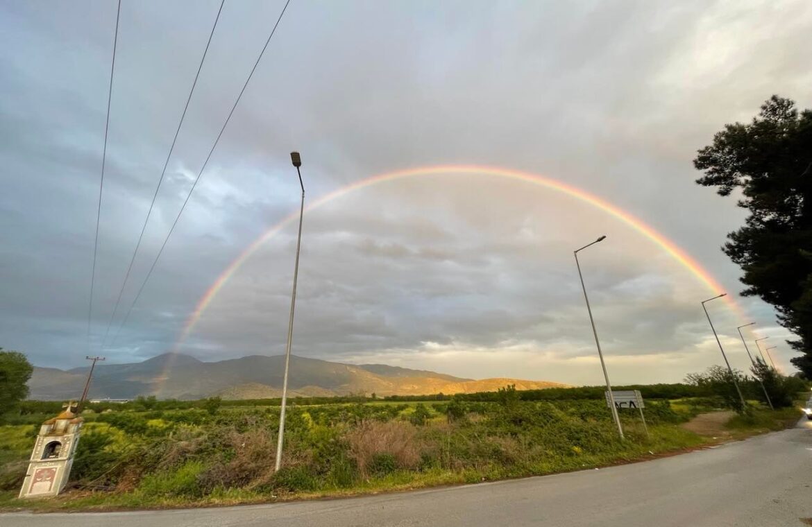 Ένα πανέμορφο θέαμα είχαν την ευκαιρία να αντικρίσουν σήμερα το απόγευμα όσοι πέρασαν από την περιοχή του Συκουρίου καθώς ένα ουράνιο τόξο ξεπρόβαλλε, μετά τη βροχή που έπληξε την περιοχή, από το βουνό του Κισσάβου φτάνοντας μέχρι τη λίμνη Κάρλα.