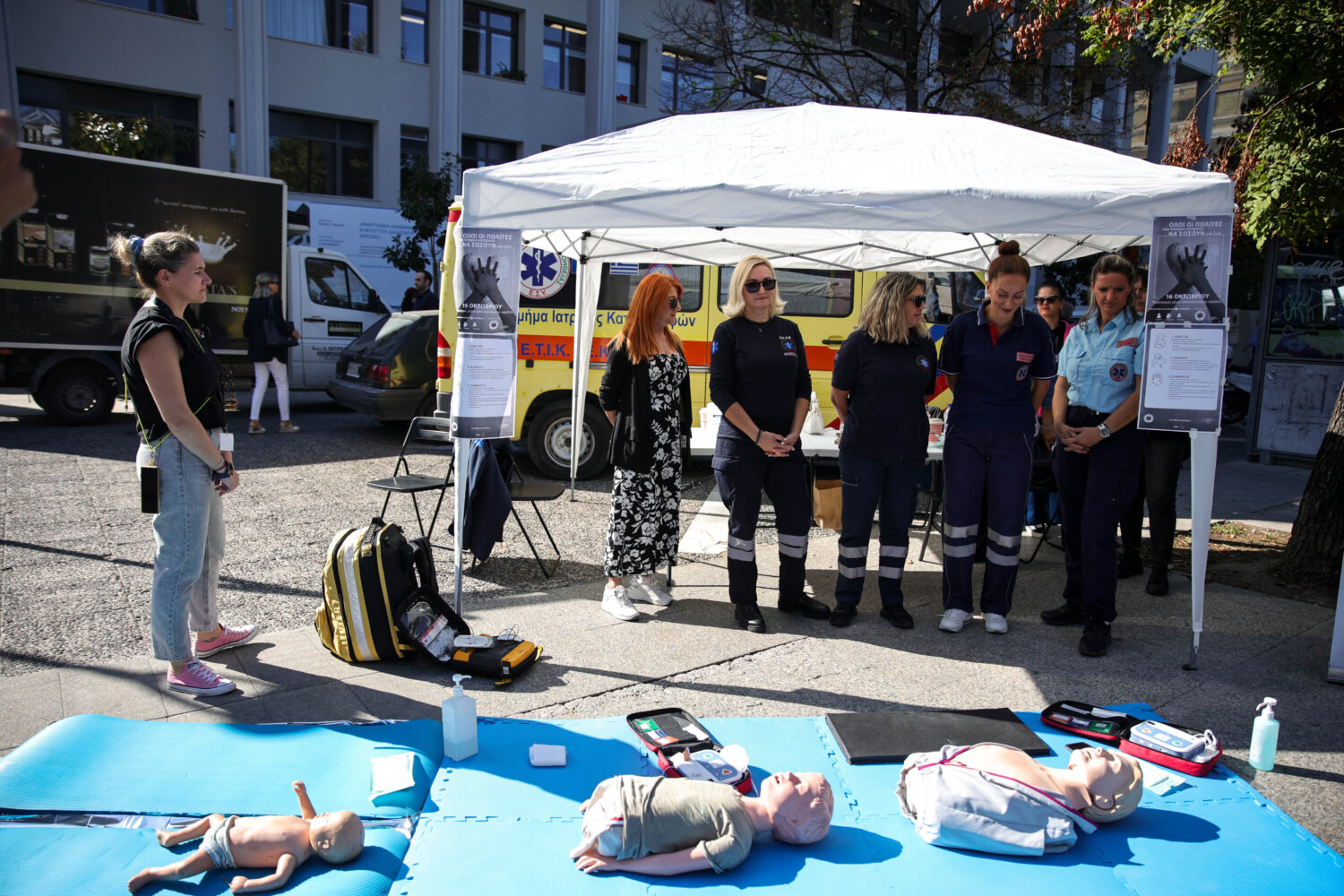 Κατά τη διάρκεια των εκπαιδευτικών εκδηλώσεων, οι διασώστες και οι ιατροί του ΕΚΑΒ πραγματοποίησαν επιδείξεις στην Καρδιοπνευμονική Αναζωογόνηση και στη χρήση του Αυτόματου Εξωτερικού Απινιδωτή σε συνδυασμό με πρακτικές ασκήσεις σε σταθμούς δεξιοτήτων με τη χρήση προπλασμάτων και εκπαιδευτικών Απινιδωτών.