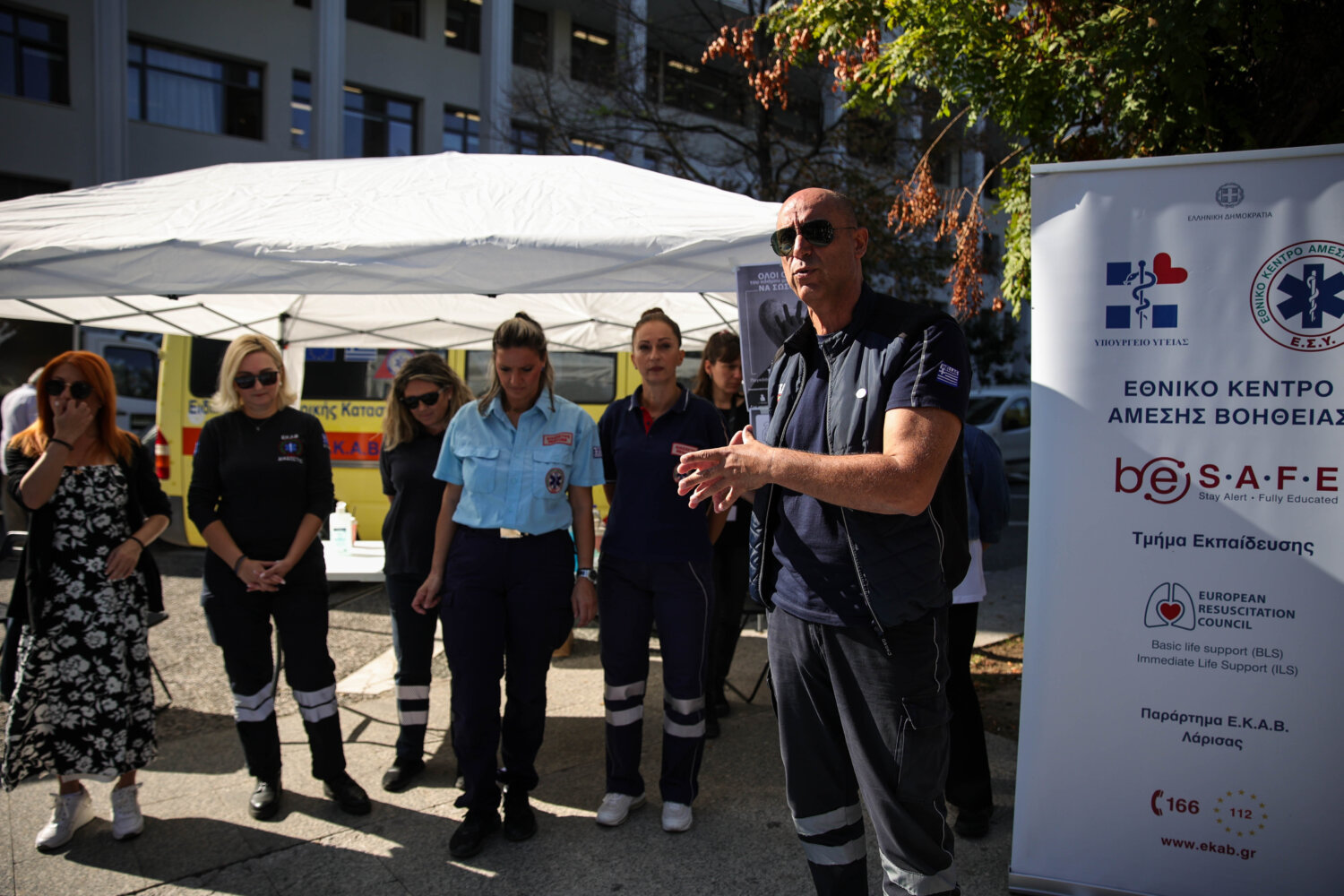 «Με απλές κινήσεις με τα χέρια μπορούμε να επαναφέρουμε έναν άνθρωπο στη ζωή», ανέφερε μεταξύ άλλων ο πρόεδρος εργαζομένων του ΕΚΑΒ Θεσσαλίας, Γιάννης Γούλας.