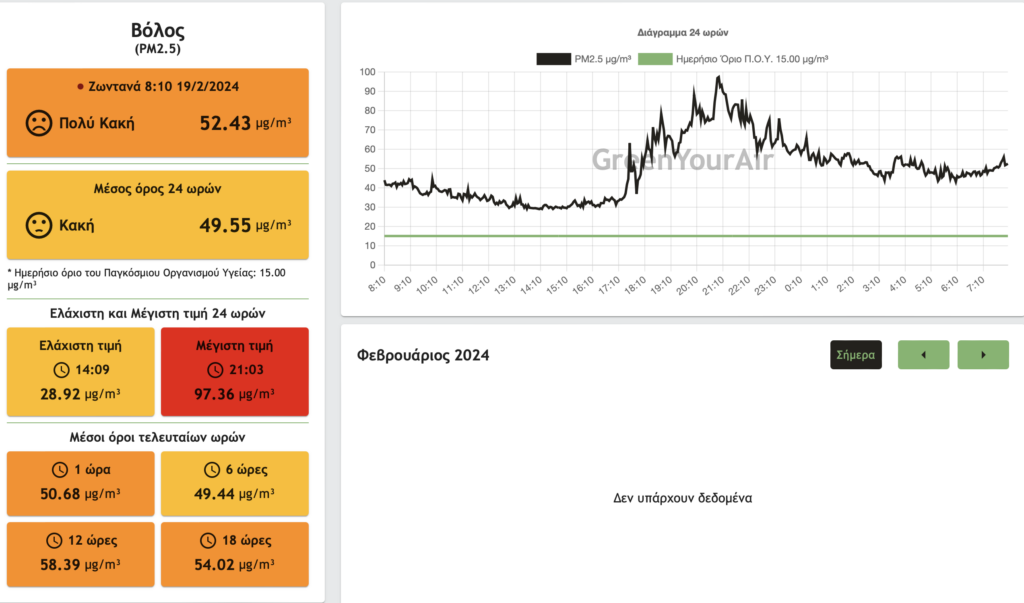Αέρια ρύπανση πολύ πάνω από τα ανώτατα επιτρεπόμενα όρια δείχνουν τα στοιχεία του δικτύου μετρητών του Πανεπιστημίου Θεσσαλίας και του προγράμματος greenyourair.