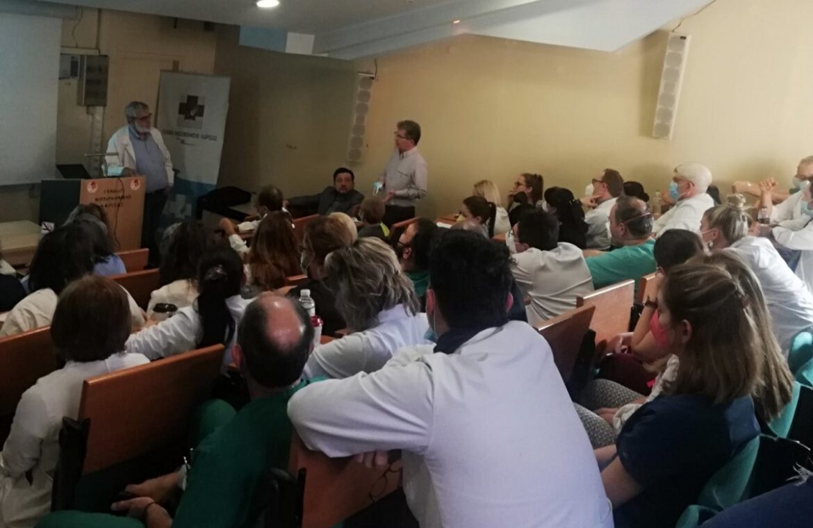 Με θέμα «ο ρόλος της Επιτροπής Λοιμώξεων στην καθημερινή λειτουργία του Νοσοκομείου και η μάστιγα των νοσοκομειακών λοιμώξεων», πραγματοποιήθηκε στο αμφιθέατρο του Γενικού Νοσοκομείου Λάρισας, ομιλία του Προέδρου της Επιτροπής Λοιμώξεων και Διευθυντή Παθολογίας, κ. Γκαμπράνη Ιωάννη.