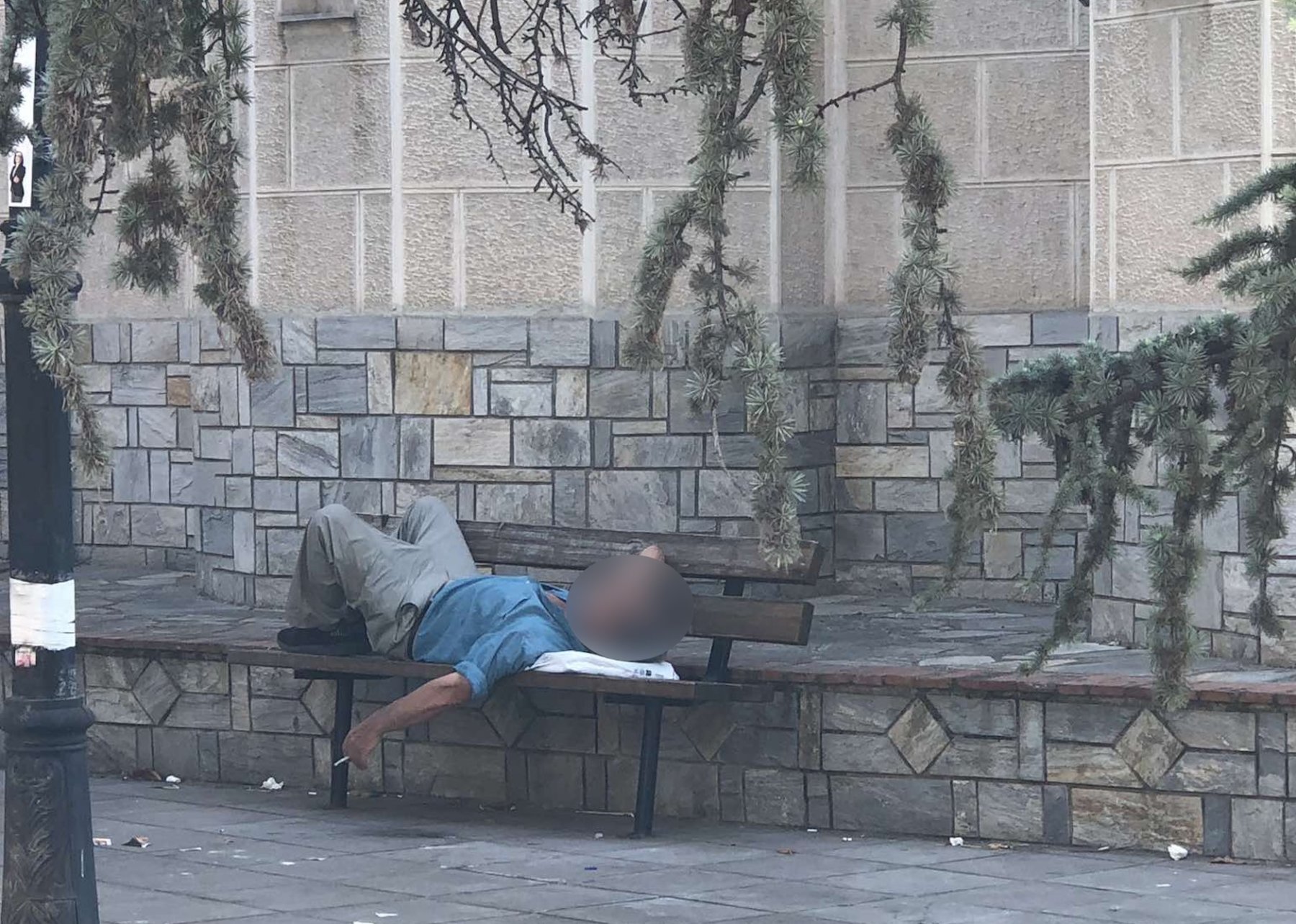 Δύο άτομα, μπορεί και τρία σύμφωνα με τις μαρτυρίες, που πιθανότατα αποτελούν παρεάκι, αποφάσισαν να περνούν τα μεσημέρια τους (τουλάχιστον αυτή την ώρα της ημέρας εθεάθησαν) στον εξωτερικό χώρο του Ιερού Ναού του Αγίου Νικολάου. Έχουν εγκατασταθεί λοιπόν κυρίως στον μαρμάρινο περίγυρο έχοντας απλώσει όλο το… σετ φαγητού και ύπνου, σεντόνια, κουβέρτες, μαξιλάρια, χρησιμοποιούν ακόμη και τα πόμολα των πορτών της εκκλησίας για κρεμάστρες, είτε στα παγκάκια στον προαύλιο χώρο.