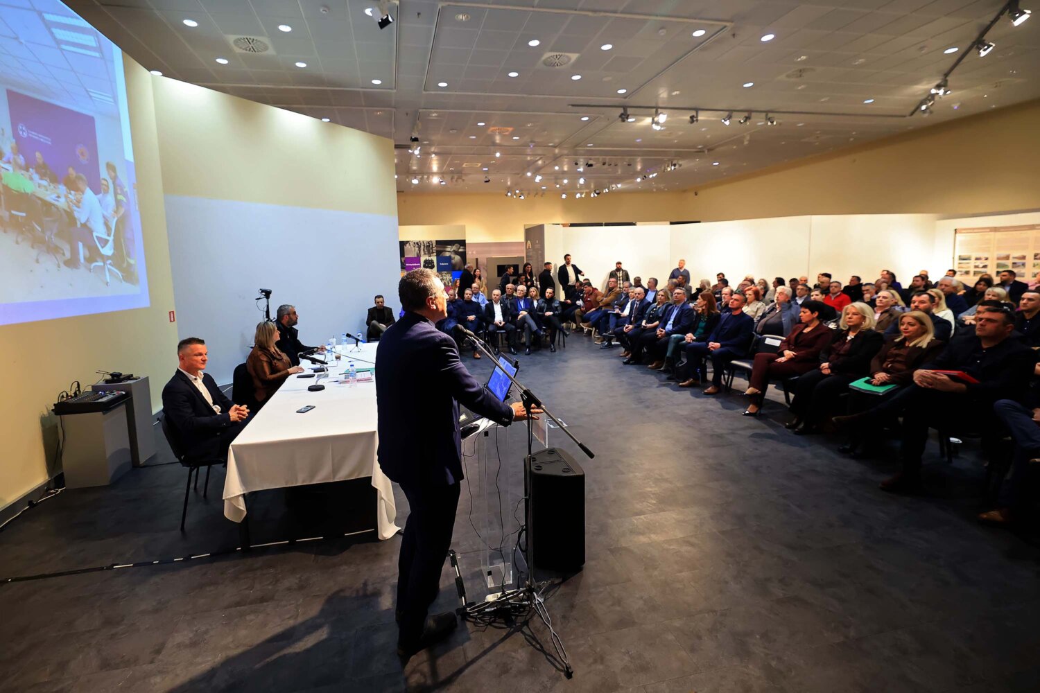 Κλείνοντας ο κ. Κουρέτας παρουσίασε όλο το εύρος των επενδύσεων σε αθλητικές υποδομές και νέα κτίρια για την ΕΛΑΣ και την Πυροσβεστική. Ειδικότερα πρόκειται για 7 κολυμβητήρια σε Μετέωρα, Ελασσόνα, Τύρναβο, Πύλη, Παναμά, Ζαγορά, Αλμυρό (συνολικής αξίας 8 εκατ.), 6 κλειστά γυμναστήρια σε Πύλη, Συκούριο, Γιάννουλη, Βελεστίνο, Αγχίαλο, Αργαλαστή (10 εκατ.), Αστυνομικό Μέγαρο Ελασσόνας (1 εκατ.), Αστυνομικό Μέγαρο Τρικάλων (4.250.000), Κτίριο Πυροσβεστικής στον Βόλο (6 εκατ.), αλλά και κατασκευή Γηροκομείου στη Λάρισα (1 εκατ).