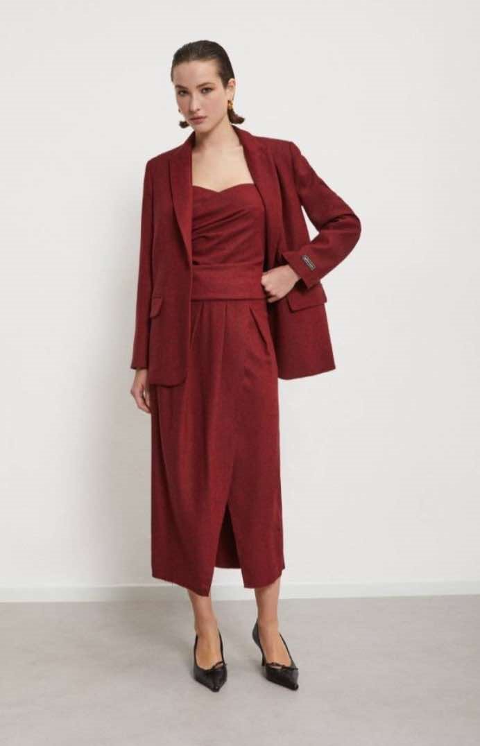 Για το καφέ, από το σκούρο μέχρι το κάμελ, και την δυναμική επιστροφή του μιλάει και η Μαρία Δαλαμάγκα στο Dominique. Και για το μπορντώ. Το οποίο είναι μεγάλη τάση φέτος, ενώ το κόκκινο υπάρχει πάντα στις κολεξιόν, ένα σταθερά αγαπημένο γιορτινό χρώμα. Μια άλλη τάση είναι το μπλε και σε συνδυασμό με το μαύρο. Και φυσικά το γκρι, γκρι με γαλάζιο, γκρι με μπορντώ. Αλλά, τονίζει, ότι η φετινή χρωματική παλέτα είναι διαχρονική, ειδικά σε σχέση με πέρυσι που υπήρχε πολύ μωβ και φούξια. «Τα φετινά ρούχα προσφέρονται για διαχρονικές αγορές, και η θηλυκότητα που υπάρχει φυσικά είναι κομψή και διαχρονική»… Ακόμη και οι βραδινές και γιορτινές επιλογές δεν έχουν λάμψη. «Η luxury τάση για φέτος είναι το βελούδο, που είναι μια πρόταση όχι μόνο βραδινή, αλλά και καθημερινή· ειδικά το καθημερινό βελούδινο κοστούμι.