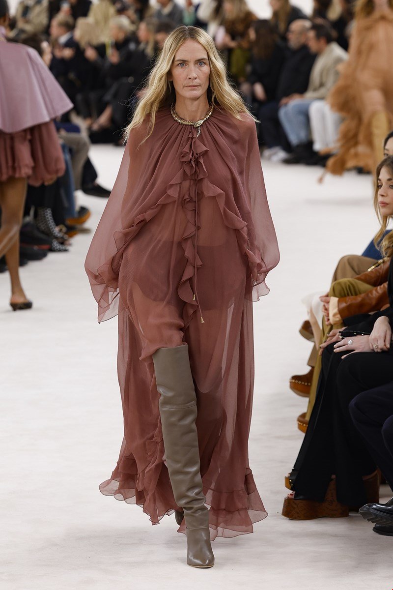Πρόκειται για μια μεγάλη αλλαγή σε σχέση με τις προηγούμενες σεζόν. Το 2023, μην ξεχνάμε, είχαμε την τάση Y2K, που έζησε μια αναβίωση από την εποχή του millennium, και που αυτό που τη χαρακτήριζε ήταν η υπερβολή· έντονα χρώματα, γυαλιστερά, λάτεξ, λούρεξ υφάσματα, παγιέτες και λάμψη.