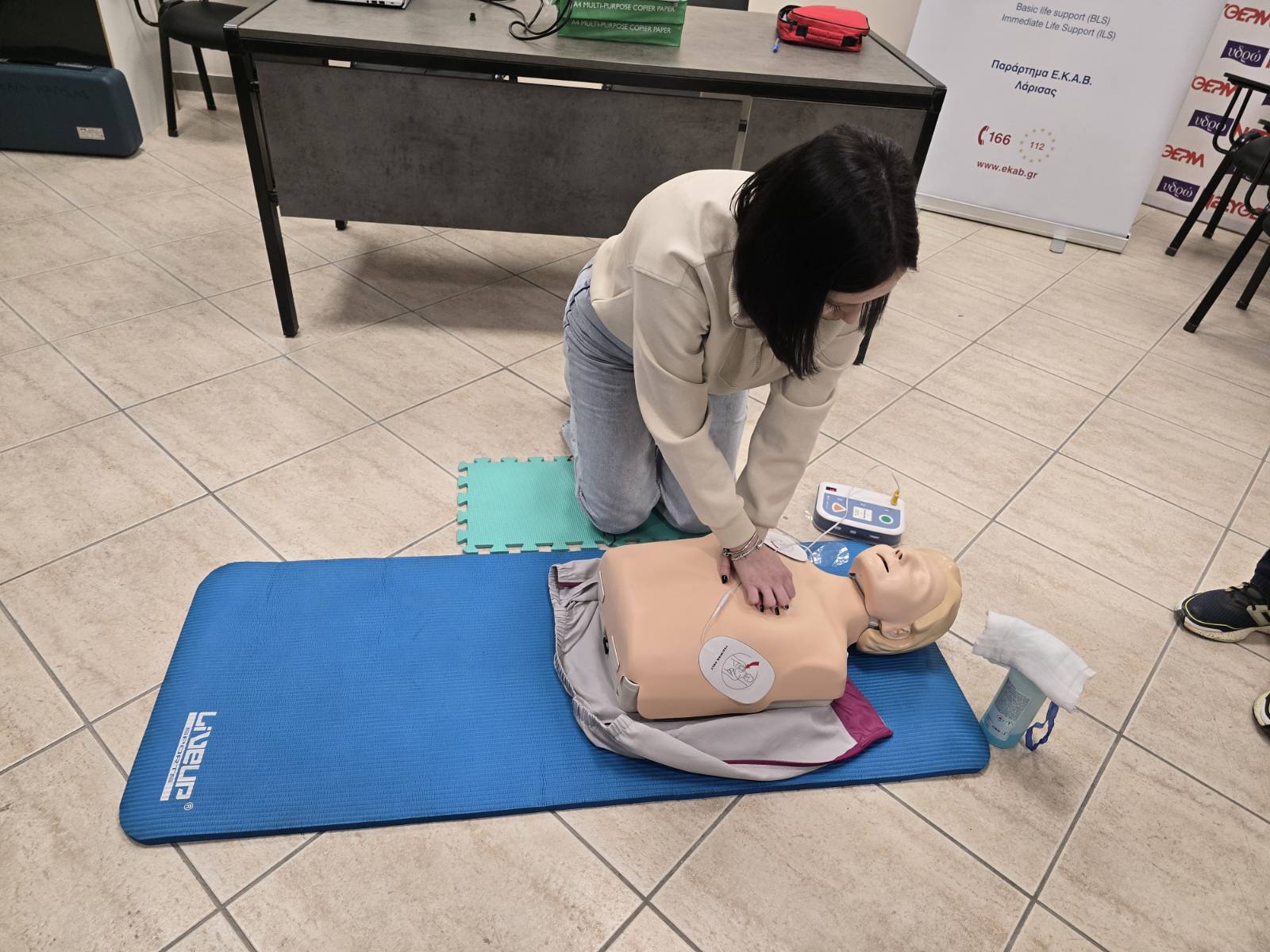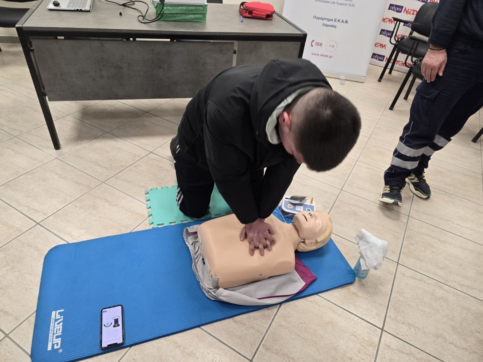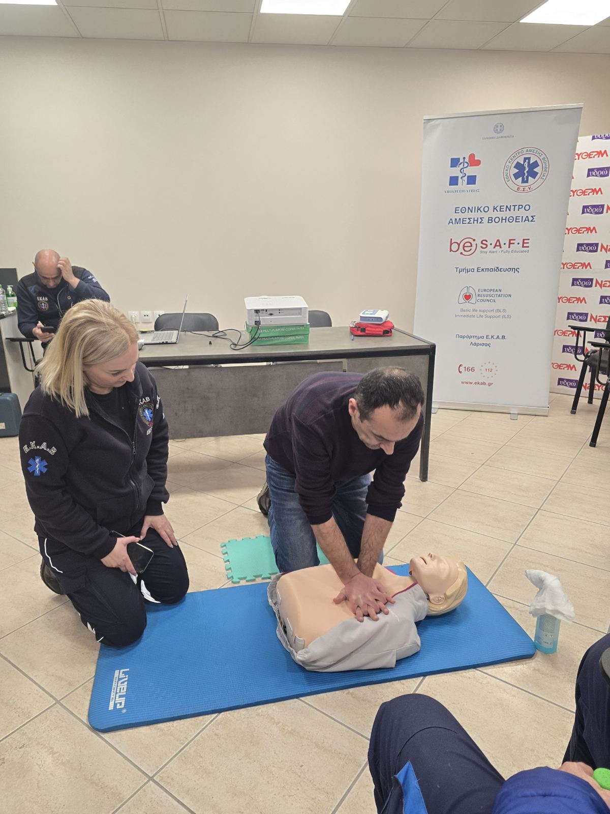 Πραγματοποιήθηκε την Τρίτη, 28 Ιανουαρίου στο κατάστημα του «ΥΔΡΩ – ΝΕ.ΣΥ.ΘΕΡΜ.» από το Ε.Κ.Α.Β Λάρισας, πρότυπο εκπαιδευτικό πρόγραμμα με θεματικές ενότητες : Υποστήριξη λειτουργιών πνευμόνων και καρδιάς – Τραυματισμοί – Παθολογικές καταστάσεις. Το αντικείμενο αναλυτικά περιλάμβανε: