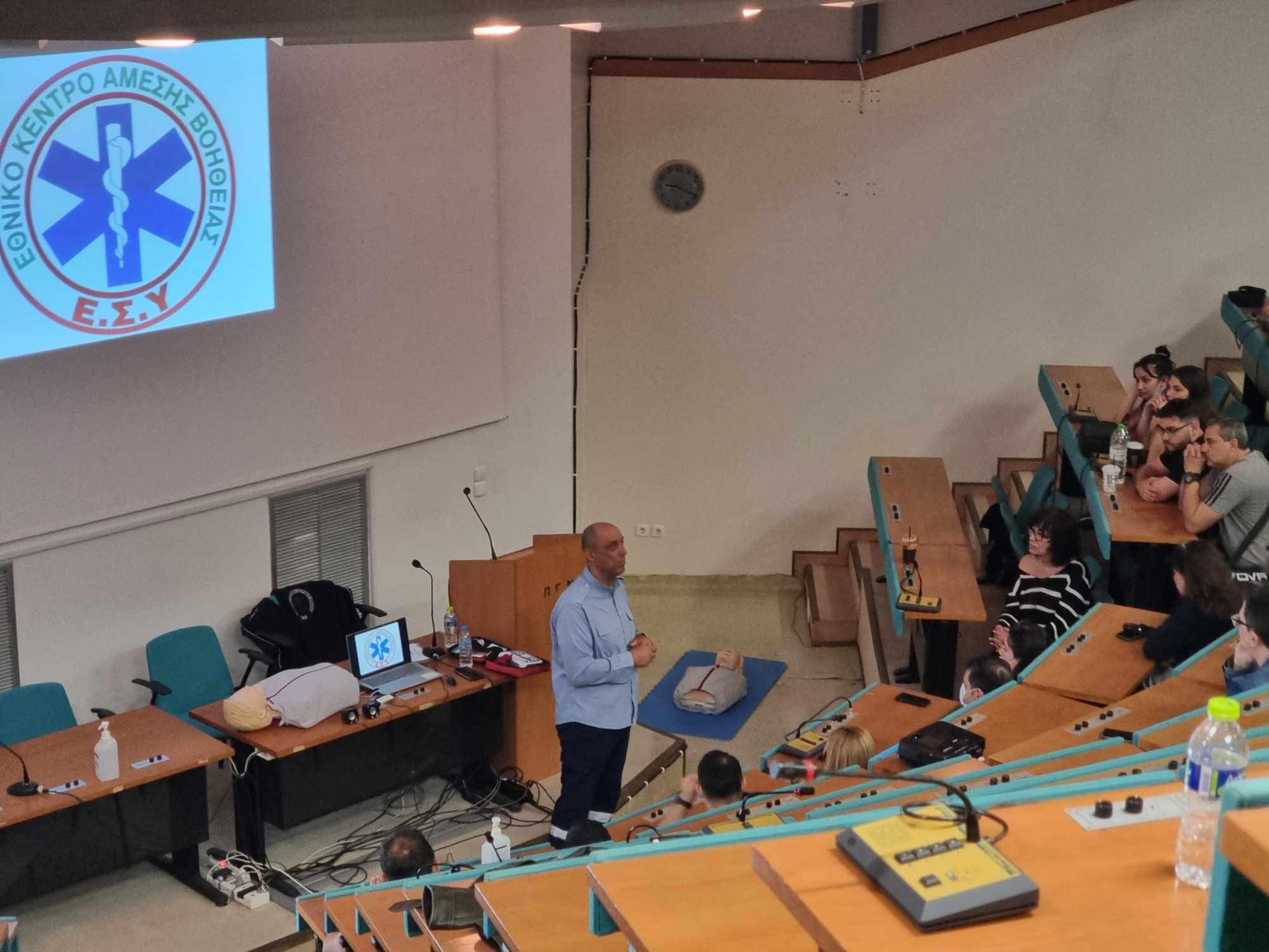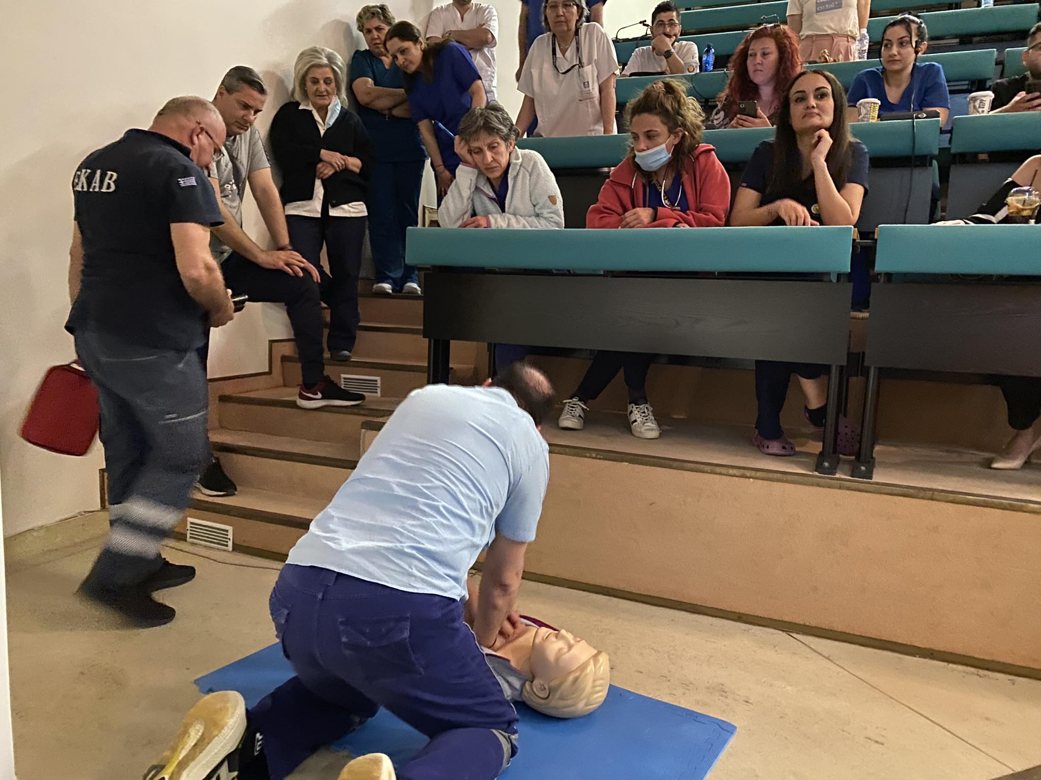 Η 5η ‘ΥΠΕ Θεσσαλιας και Στερεάς Ελλάδας και το Πανεπιστημιακό Νοσοκομείο Λάρισας πραγματοποίησαν σε συνεργασία με το ΕΚΑΒ σεμινάριο ΚΑΡΠΑ (Καρδιοαναπνευστική Αναζωογόνηση), με χρήση αυτόματου εξωτερικού απινιδωτή (AED), Πνιγμονή από ξένο σώμα, τραύμα κ.α από την εκπαιδευτική ομάδα του ΕΚΑΒ Λάρισας.