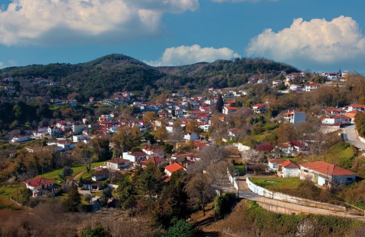 Το χωριό είναι χτισμένο αμφιθεατρικά, προσφέροντας μοναδική πανοραμική θέα στο Αιγαίο Πέλαγος. Απέχει μόλις 6 χιλιόμετρα από τις κοντινές παραλίες του Αγιόκαμπου και της Βελίκας, καθιστώντας το ιδανικό προορισμό για όσους επιθυμούν να συνδυάσουν βουνό και θάλασσα