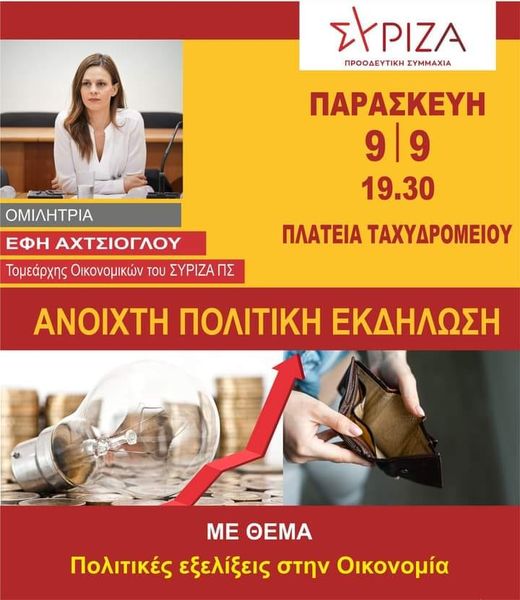Θεσσαλία Στη Λάρισα σήμερα Παρασκευή η Εφη Αχτσιόγλου Σεπ 09, 2022 to kentri Twitter Facebook LinkedIn Pinterest Email