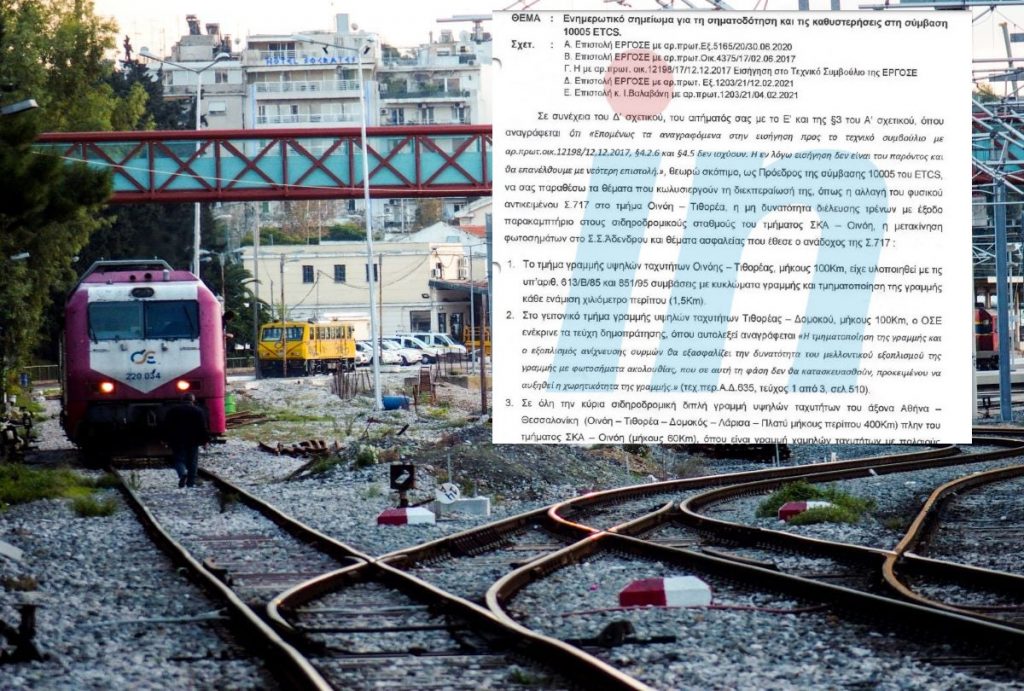 Στην αρχή του υπομνήματος τονίζεται ότι «θεωρώ ως πρόεδρος της σύμβασης 10005 του ETCS, να σας παραθέσω τα θέματα που κωλυσιεργούν τη διεκπεραίωσή της, όπως η αλλαγή του φυσικού αντικειμένου Σ. 717 στο τμήμα Οινόη – Τιθορέα, η μη δυνατότητα διέλευσης τρένων με έξοδο παρακαμπτήριο στους σιδηροδρομικούς σταθμούς του τμήματος ΣΚΑ – Οινόη, η μετακίνηση φωτοσημάτων στο Σ.Σ. Αδένδρου και θέματα ασφάλειας που έθεσε ο ανάδοχος της Σ.717.