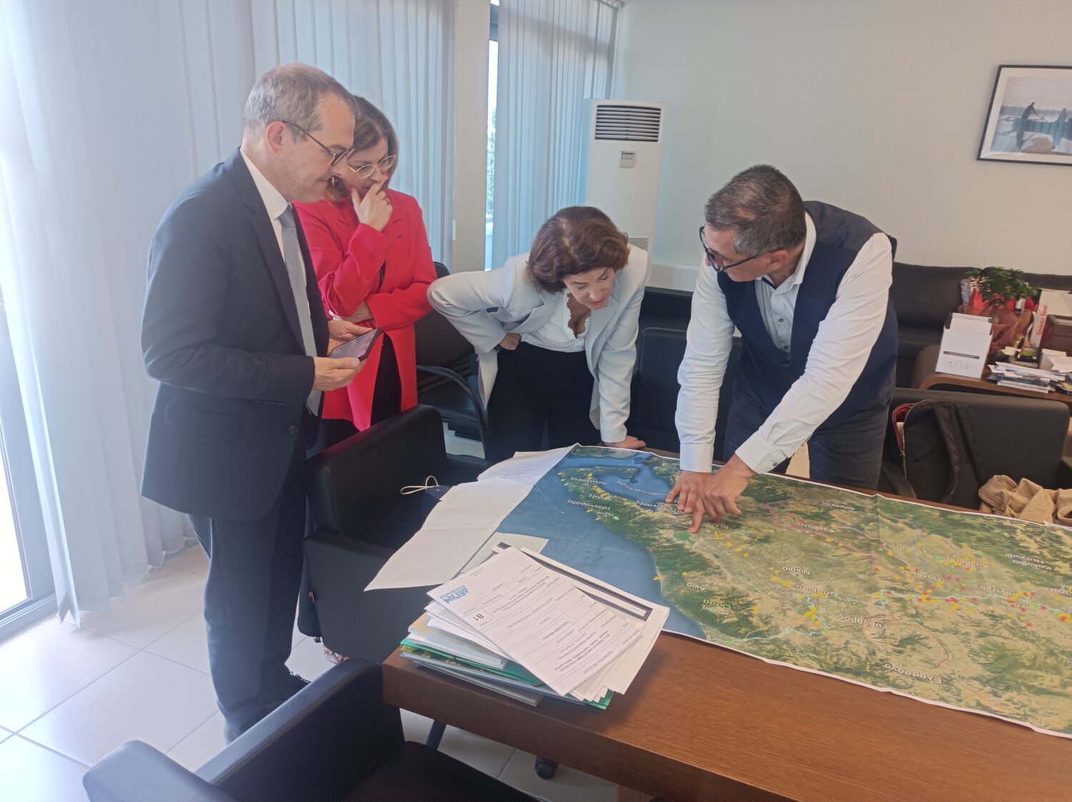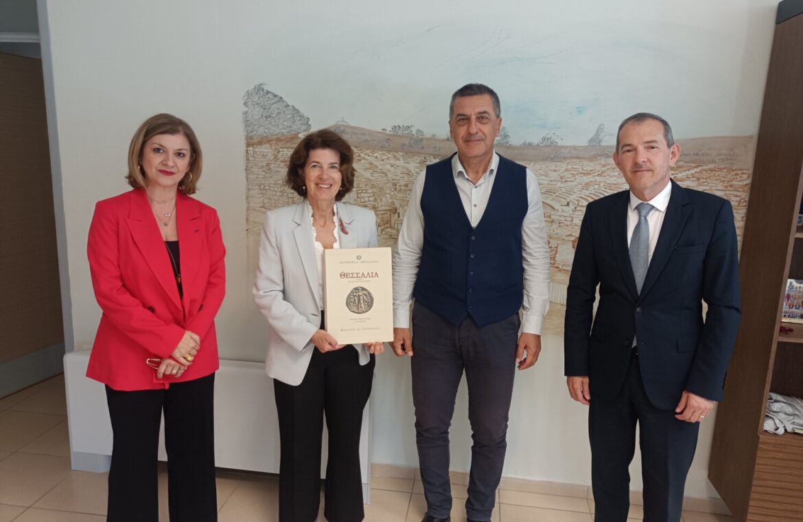 Την πρέσβειρα της Γαλλίας στην Ελλάδα υποδέχθηκε σήμερα στο γραφείο του ο Περιφερειάρχης Θεσσαλίας Δ. Κουρέτας. Η κα. Laurence Auer συνοδευόταν από τον Γενικό Πρόξενο της Γαλλίας στη Θεσσαλονίκη Ζαν Λυκ Λαβό και επισκέπτεται τη Θεσσαλία για τρίτη φορά μετά τις καταστροφικές πλημμύρες του περασμένου Σεπτεμβρίου.