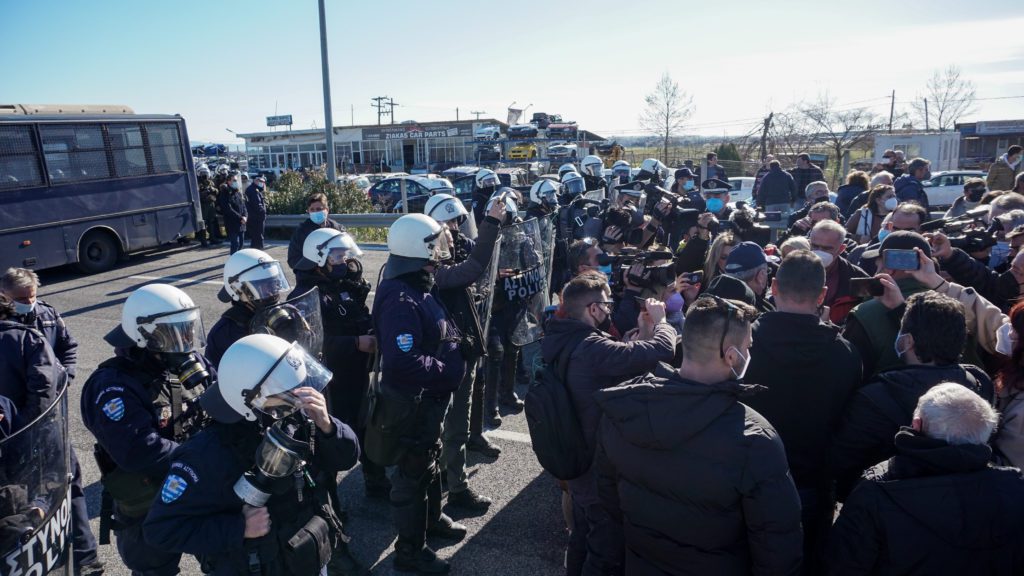 Ωστόσο, εκεί τους περίμεναν ισχυρές δυνάμεις της αστυνομίας και ΜΑΤ για να τους εμποδίσουν να κλείσουν την εθνική οδό.