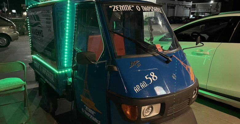 Το τρίκυκλό του το οποίο το ανακαίνισε τα τελευταία χρόνια και πλέον μοιάζει με … εξωγήινο όχημα, κοσμείται από το brand της εταιρείας, το οποίο είναι “Ζέμπε ο Παριζιάνος”. Γιατί άραγε Παριζιάνος; Μα διότι λατρεύει το Παρίσι, αν και ακόμη δεν έχει καταφέρει να πάει στην πρωτεύουσα της Γαλλίας παρότι όπως μας τονίζει, οι δουλειές πάνε καλά.