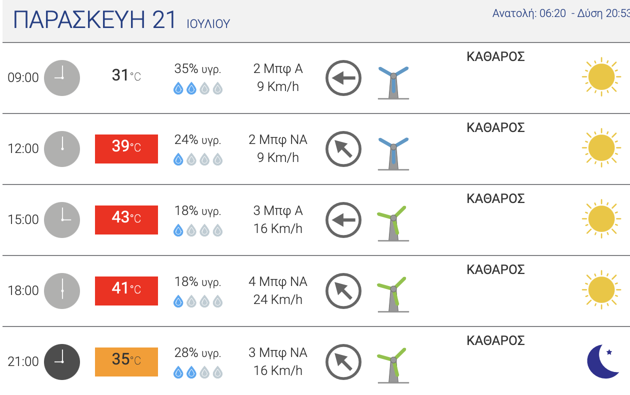 Εξάλλου, επικίνδυνα καιρικά φαινόμενα μαστίζουν και σήμερα όλη την Ελλάδα με το θερμόμετρο να βρίσκεται στα ύψη καθώς ενσκήπτει το νέο κύμα καύσωνα.
