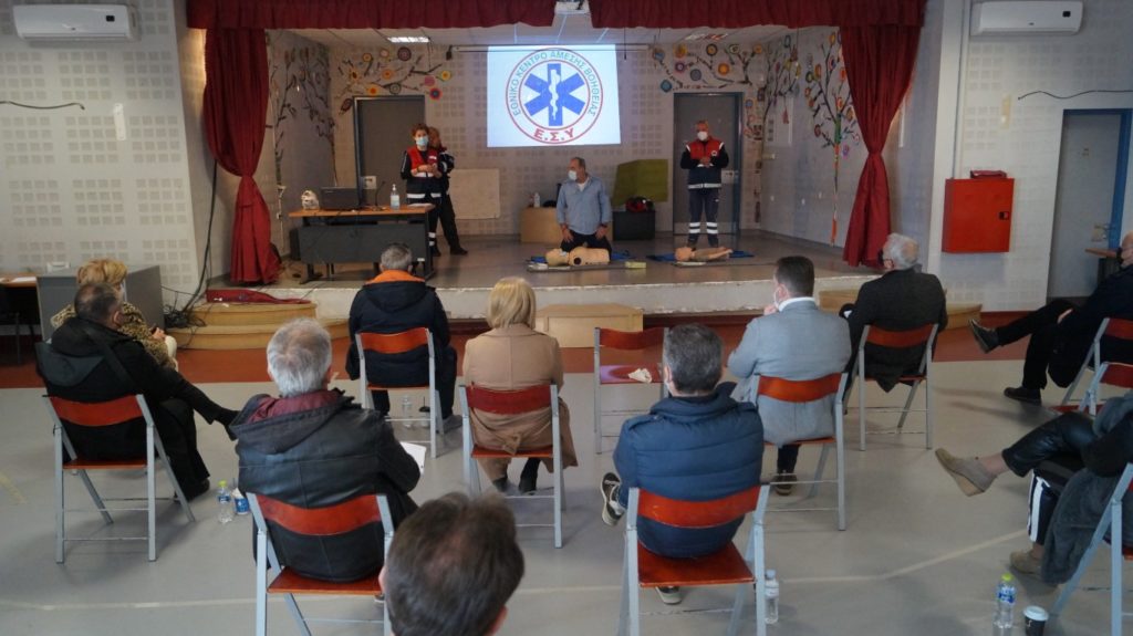 Η Διεύθυνση Πρωτοβάθμιας Εκπαίδευσης Τρικάλων σε συνεργασία με το ΕΚΑΒ Θεσσαλίας, διοργάνωσε την Τρίτη 15 Μαρτίου 2022 στο αμφιθέατρο του 10ου Δημοτικού Σχολείου Τρικάλων, το εξαιρετικά χρήσιμο σεμινάριο καρδιοπνευμονικής αναζωογόνησης με τη χρήση αυτόματου εξωτερικού απινιδωτή (ΑΕΑ) προκειμένου να εκπαιδευθούν οι Διευθυντές,-ντριες των Δημοτικών σχολείων στην παροχή Πρώτων Βοηθειών.