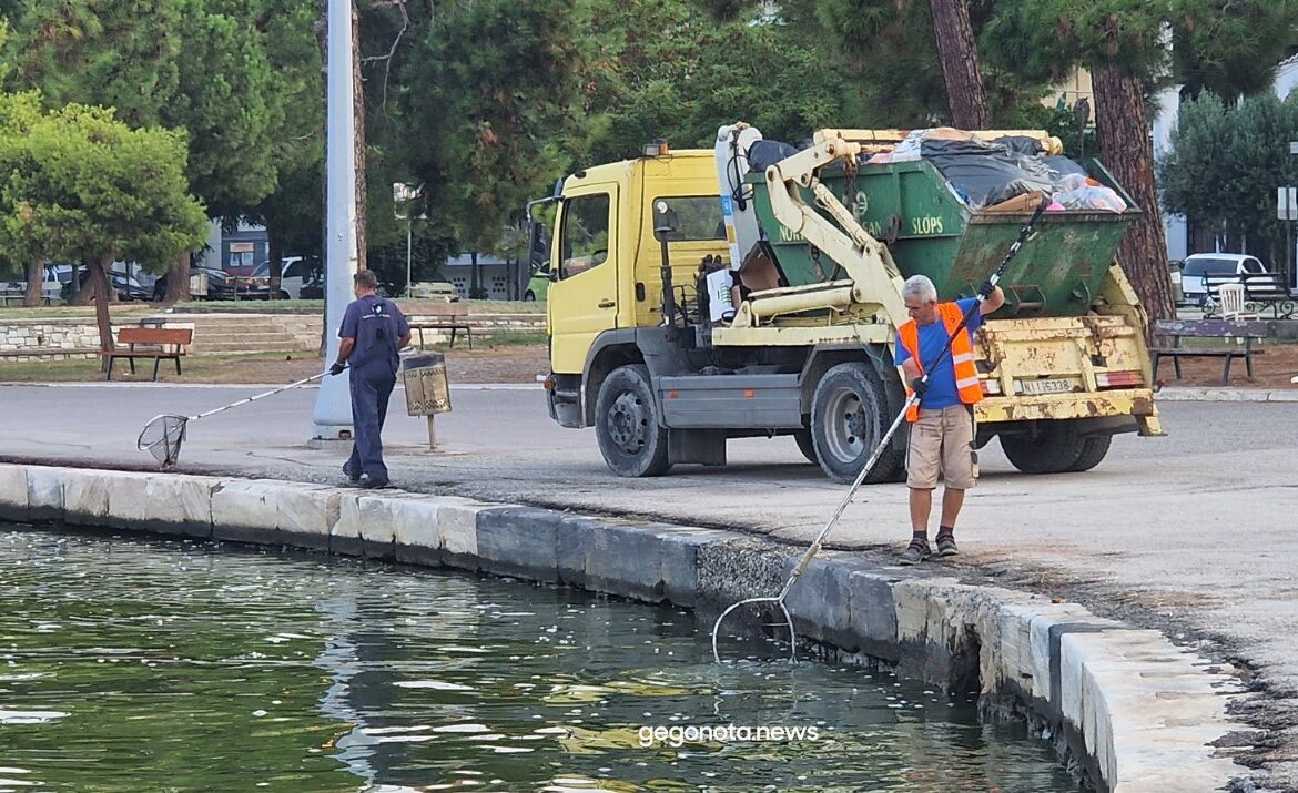 Νεκρά ψάρια περισυλλέγονται με απόχες κατά δεκάδες και ρίχνονται μέσα στα απορριμματοφόρα