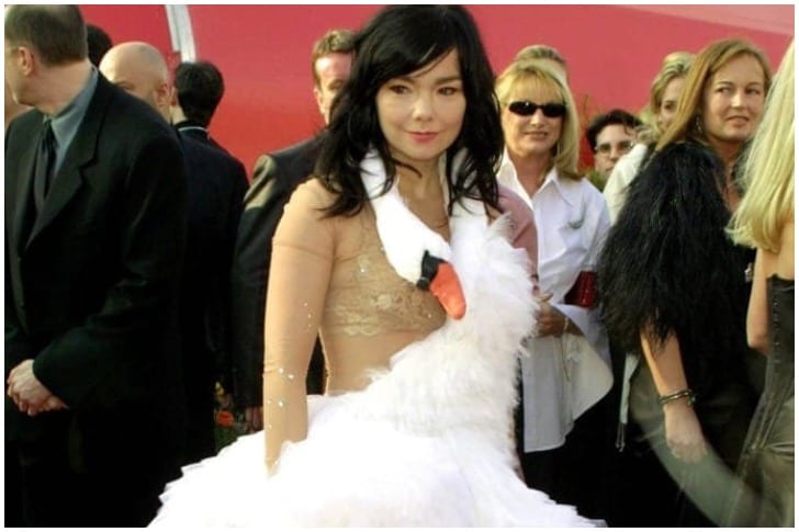 Created by Marjan Pejoski, a Macedonian designer, the dress made its first public appearance at the 2001 Academy Awards and has since continued to fascinate people worldwide. At the ceremony, Björk pretended to lay an egg on the red carpet, leaving people more confused than ever. The dress may not have been the ideal choice for the Oscars, but it does have its own Wikipedia page and remains a Halloween inspiration for many.