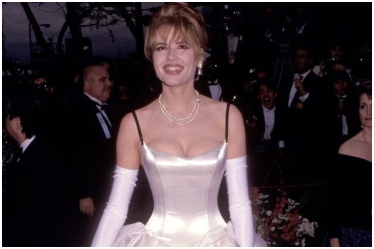 Geena Davis may have won hearts with her splendid performance in ‘Thelma & Louise’, but she didn’t win any awards for her gown at the 1992 Oscars. Her black and white ruffled dress designed by Ruth Meyers and Bill Hargateat looked like something that belonged at a Las Vegas wedding than on the red carpet.