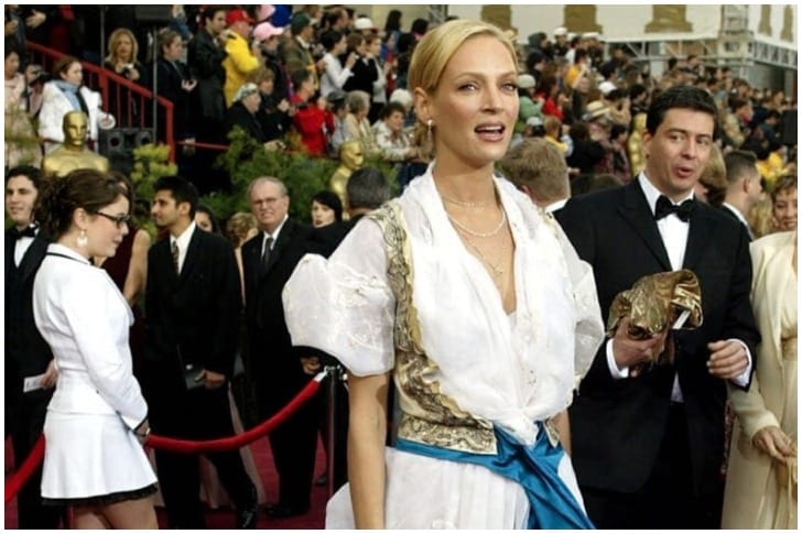 The ill-fitting layers, excessive lace, and the odd gold and blue embroidered pieces left everyone wondering what exactly Uma was thinking. It may not have been her brightest sartorial moment, but the icon gets a pass for pushing the boundaries!