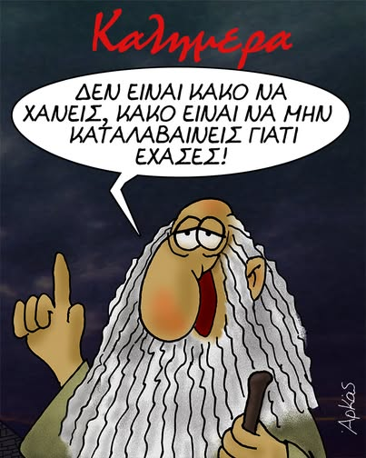 Lifestyle Αρκάς Οκτ 07, 2025 to kentri Twitter Facebook LinkedIn Pinterest Email Ο Αρκάς στέλνει τη σημερινή καλημέρα του με ένα ιδιαίτερο νοήμα. Ο Αρκάς στο σημερινό σκίτσο του μας παρουσιάζει τον γέροντα να λέει: «Δεν είναι κακό να χάνεις, κακό είναι να μην καταβαίνεις γιατί έχασες!». Το σημερινό σκίτσο ❝ ετικέτες ❞ #ΑΡΚΑΣ