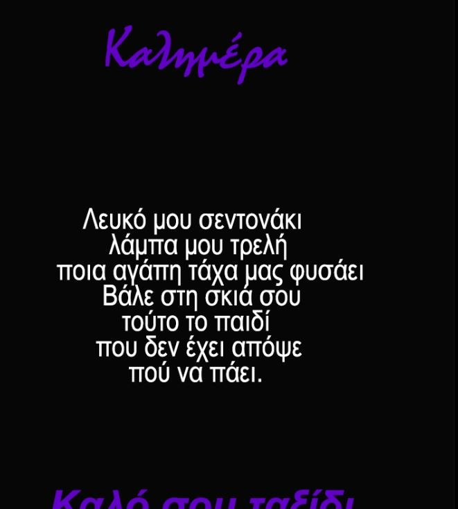 Ο Αρκάς μαζί με τη σημερινή του καλημέρα έχει επιλέξει ένα μαύρο φόντο και κάποιους στίχους από το τραγούδι του Διονύση Σαββόπουλου «Σαν τον Καραγκιόζη», που κυκλοφόρησε το 1975.