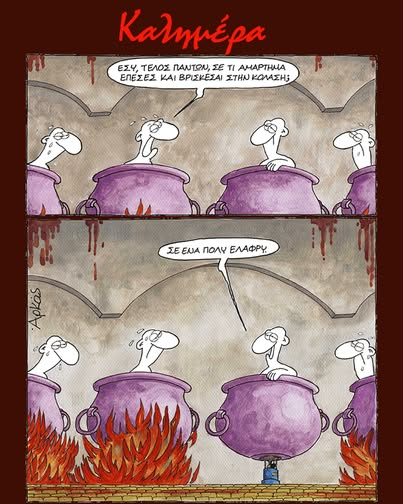 Lifestyle Αρκάς Ιαν 29, 2026 to kentri Twitter Facebook LinkedIn Pinterest Email Ο Αρκάς στέλνει και σήμερα την καλημέρα του με το δικό του ύφος. Ο Αρκάς στο σημερινό του σκίτσο μας μεταφέρει στην κόλαση, όπου διαδραματίζεται ένας χιουμοριστικός διάλογος. Το σημερινό σκίτσο ❝ ετικέτες ❞ #ΑΡΚΑΣ