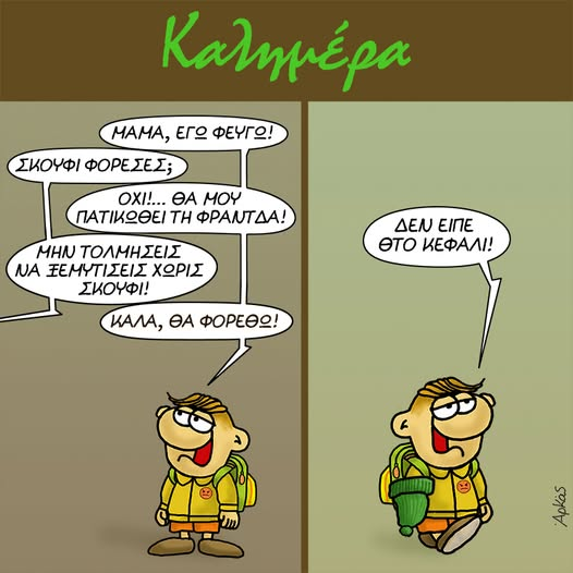 Ο Αρκάς στο σημερινό σκίτσο του μας δείχνει τον Θανασάκη να μιλάει με τη μητέρα του