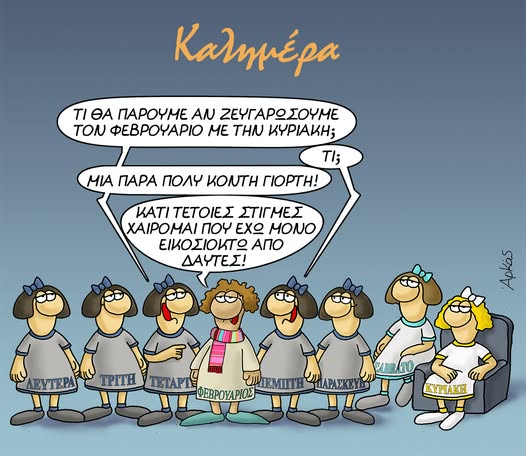 Ο Αρκάς στο σημερινό σκίτοΟ του μας δείχνει παρατεταγμένες τις ημέρες της εβδομάδας ανάμεσα στον Φλεβάρη.
