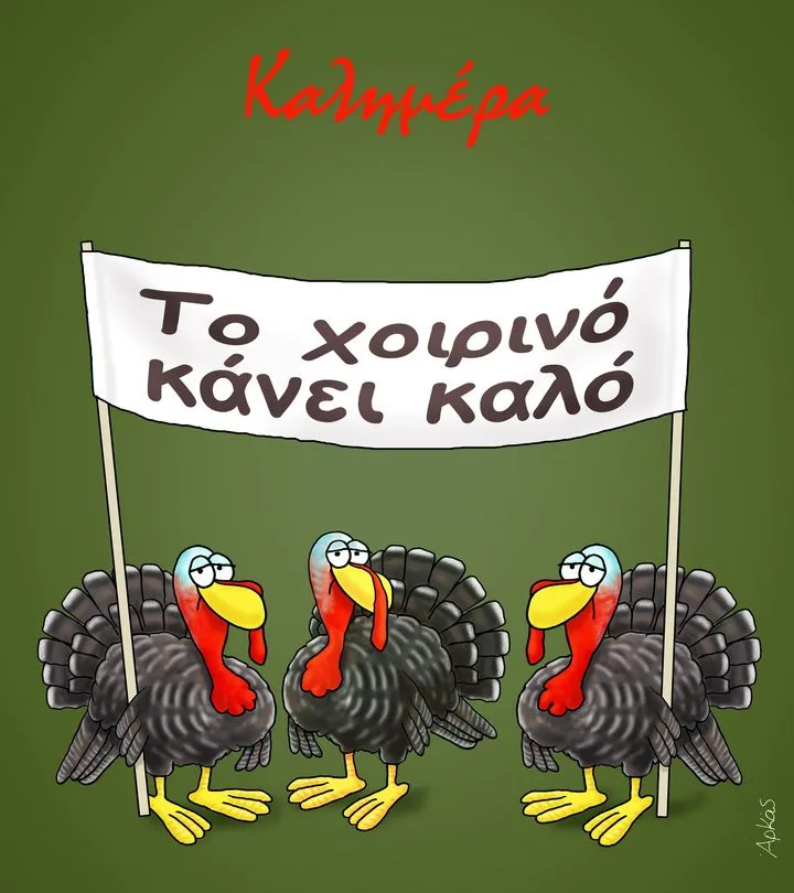 Το εν λόγω χριστουγεννιάτικο πιάτο είναι και το θέμα του σκίτσου του Αρκά, με το οποίο ο γνωστός σκιτσογράφος καλημέρισε σήμερα τους διαδικτυακούς του φίλους.