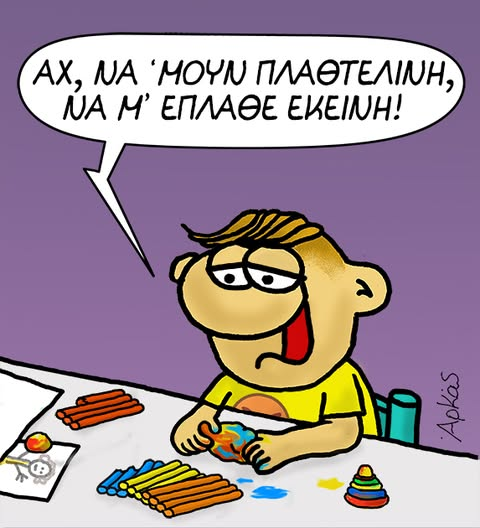 Lifestyle Αρκάς: Το σκίτσο της ημέρας με χιούμορ και πολλά χρώματα Ιαν 14, 2026 to kentri Twitter Facebook LinkedIn Pinterest Email Ο Αρκάς πάντα με χιούμορ. Ο Αρκάς μας δείχνει το μικρό Θανασάκη να βρίσκεται μπροστά από ένα θρανίο και να παίζει με πλαστελίνες λέγοντας: «Αν να μουν πλαθτελίνη, να με έπλαθε και εκείνη». Το σκίτσο ❝ ετικέτες ❞ #ΑΡΚΑΣ