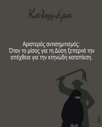 «Αριστερός αντισημιτισμός: Όταν το μίσος για τη Δύση ξεπερνά την απέχθεια για την κτηνώδη καταπίεση», γράφει στο σκίτσο του.