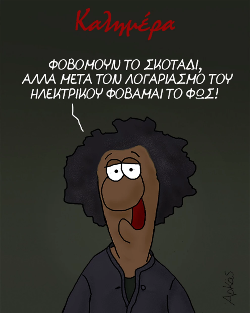 Lifestyle Ο Αρκάς για τον λογαριασμό ρεύματος: «Τώρα φοβάμαι το φως» Οκτ 17, 2024 to kentri Twitter Facebook LinkedIn Pinterest Email Το αιχμηρό σκίτσο ❝ ετικέτες ❞ #ΑΡΚΑΣ
